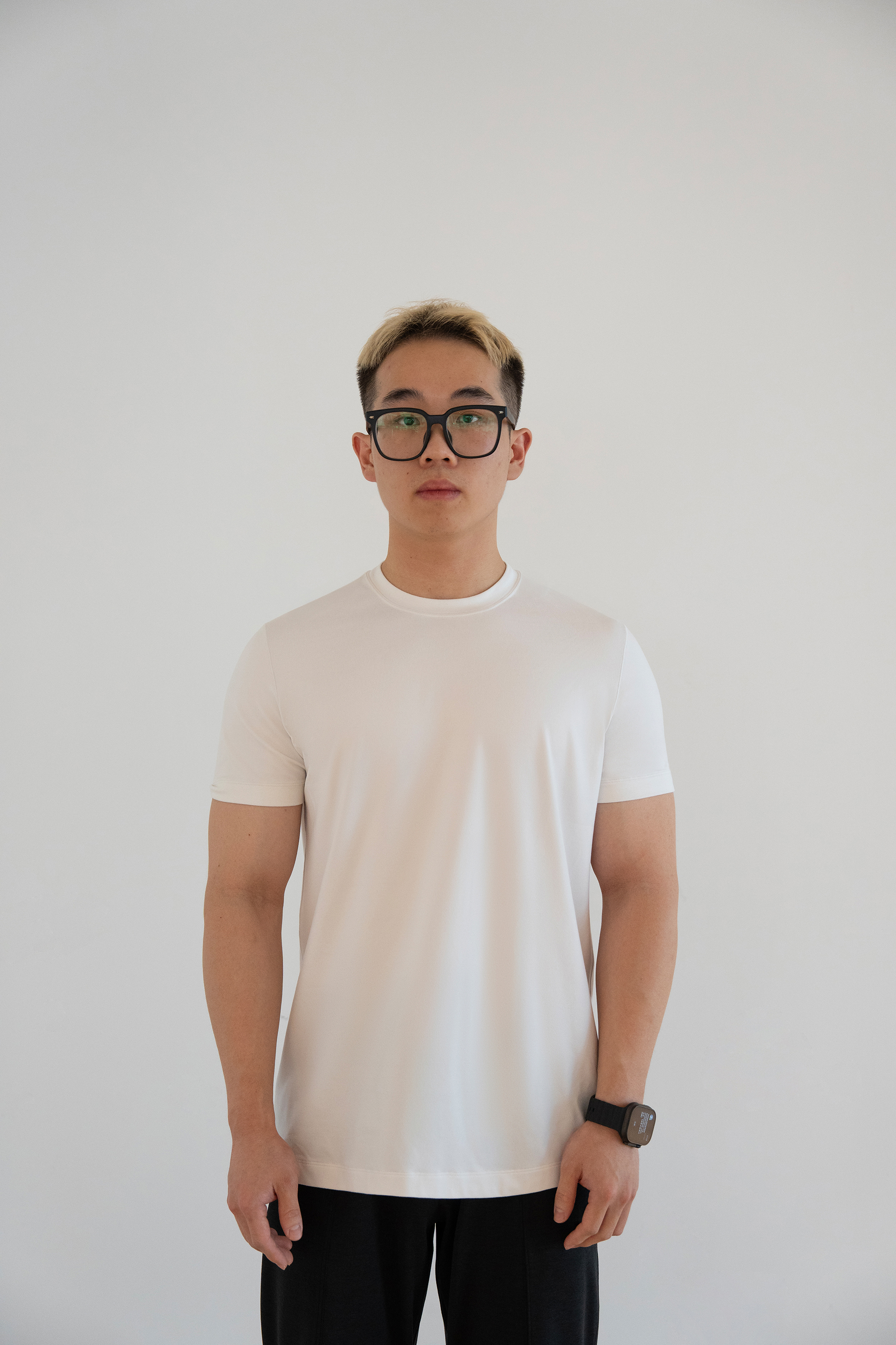 This men's T-shirt redefines the design language of everyday wear, balancing structure, material, and comfort to meet the demands of the modern urban man. Specifically tailored for Asian body proportions, it features a curved shoulder seam design that enhances the shoulder contour and the chest structure, creating a more sculpted silhouette, superior stability, and a powerful visual presence. With its relaxed yet structured fit, this piece allows effortless movement without tightness or slouch, enabling a seamless transition from home comfort to social settings.