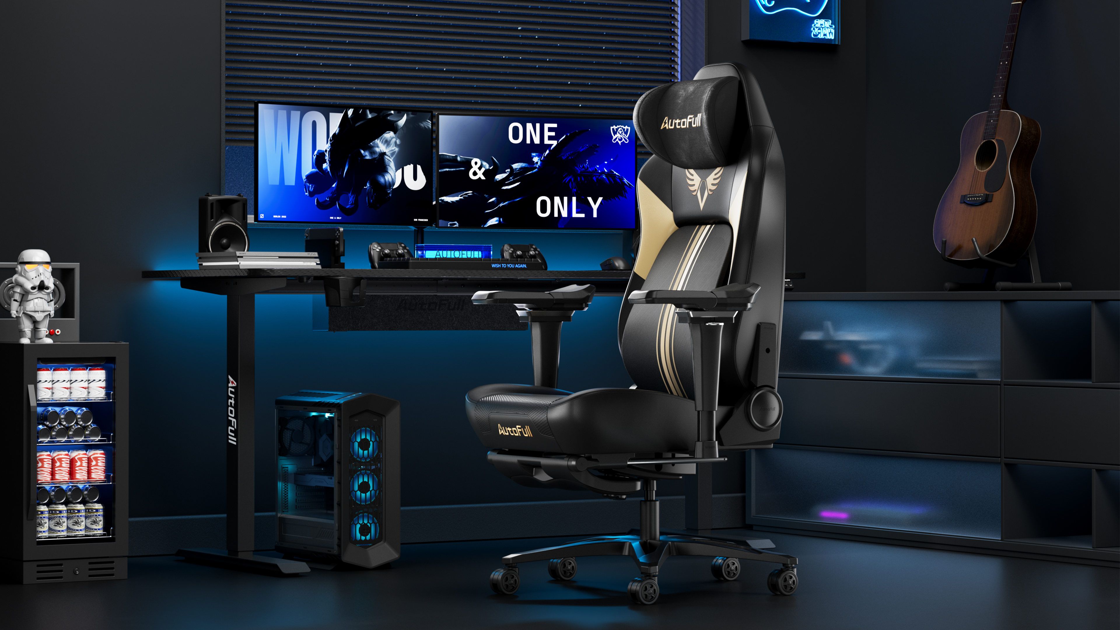 Inspired by high-performance racing seats, the AutoFull M6Pro delivers immersive wrap-around support and professional ergonomics that keep players focused through long hours of competition. Its silhouette continues the iconic M6 design language, featuring the classic “AutoFull Wings” emblem—symbolizing protection, trust, and the drive to advance. Like an in-game support teammate, the chair has your back—literally—while its gold wing-inspired accents and black-gold palette bring a refined, understated aesthetic that blends seamlessly into gaming rooms and modern interiors.