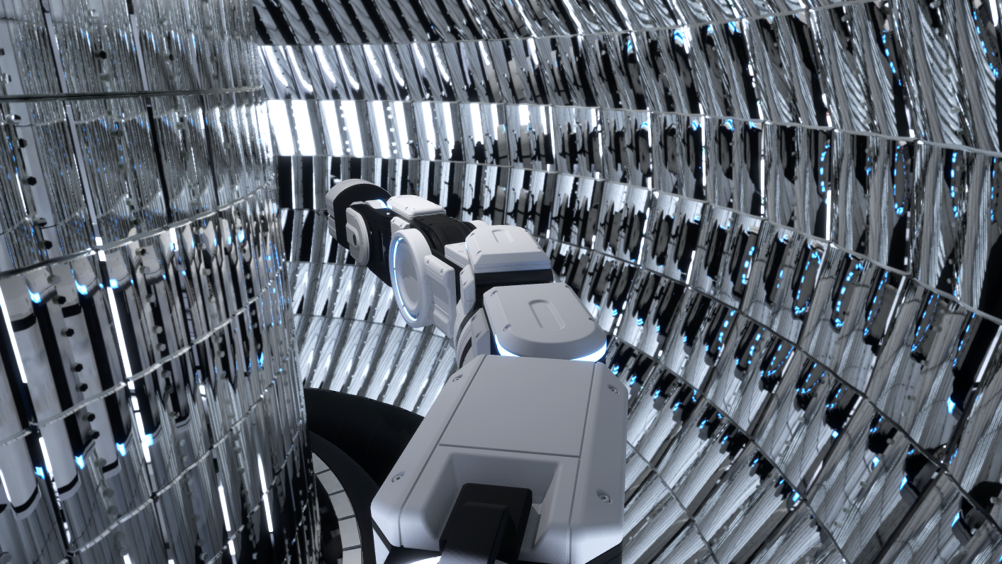 The operating environment of the tokamak nuclear fusion device is extreme, with high temperature and strong radiation inside the chamber. The first wall material of the device is prone to damage during the nuclear reaction process. In response to the difficulty of manual operation and maintenance, we have designed a remote operation and maintenance robot, which consists of a set of remote operation robotic arm and its carrying system. The robotic arm body is composed of ten degrees of freedom joints, which have high flexibility and can reach various parts inside the chamber for operation. The end is a multi-purpose interface that can carry different equipment, such as drill bits, welding tools, multifunctional fixtures, etc., to meet different operational requirements. In terms of structure, it adopts the form of structural steel skeleton and engineering plastic shell. Each joint can be easily disassembled and repaired independently, while giving it a clean and tough appearance, A dual planetary reduction integrated servo motor is used between the joints to ensure structural strength and end stability. At the same time, a digital twin platform is developed to provide real-time control interface, allowing staff to carry out remote and refined maintenance work. The virtual real linkage ensures the smooth operation of the tokamak device