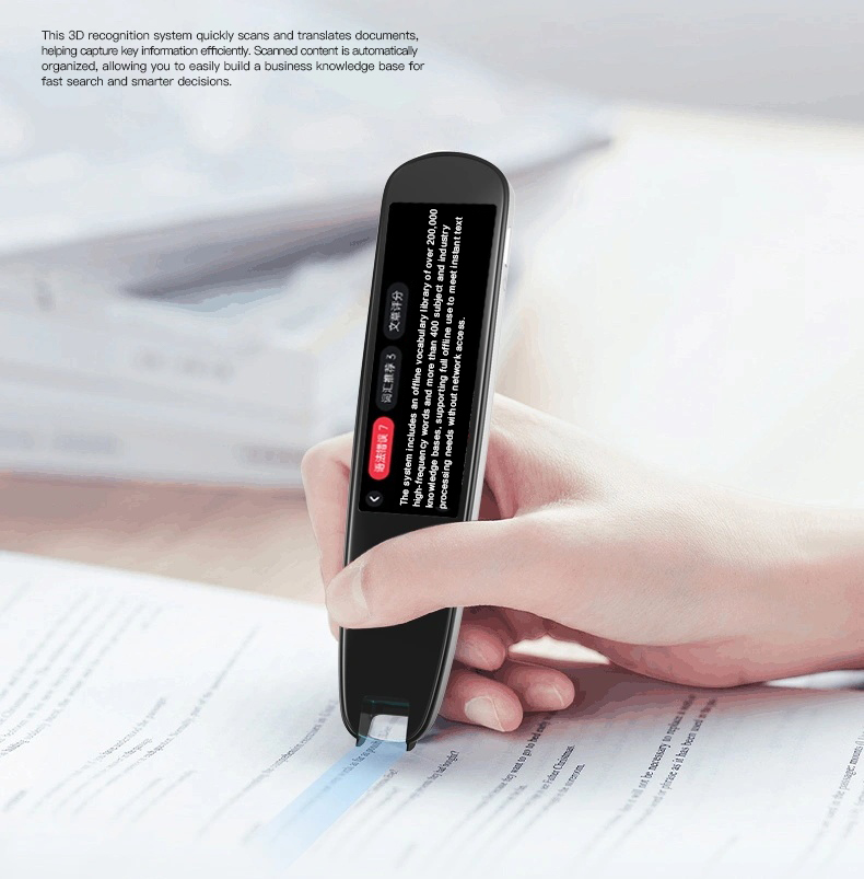 Its innovation is reflected in the deep integration of proprietary OCR technology with AI deep learning algorithms. Through continuous learning and optimization of recognition models on vast text samples, it intelligently identifies, precisely captures, and categorizes complex fonts, including handwriting, italics, and small-sized printed text. This technological breakthrough endows the scanning pen with core advantages of extremely high recognition accuracy across diverse text input scenarios.