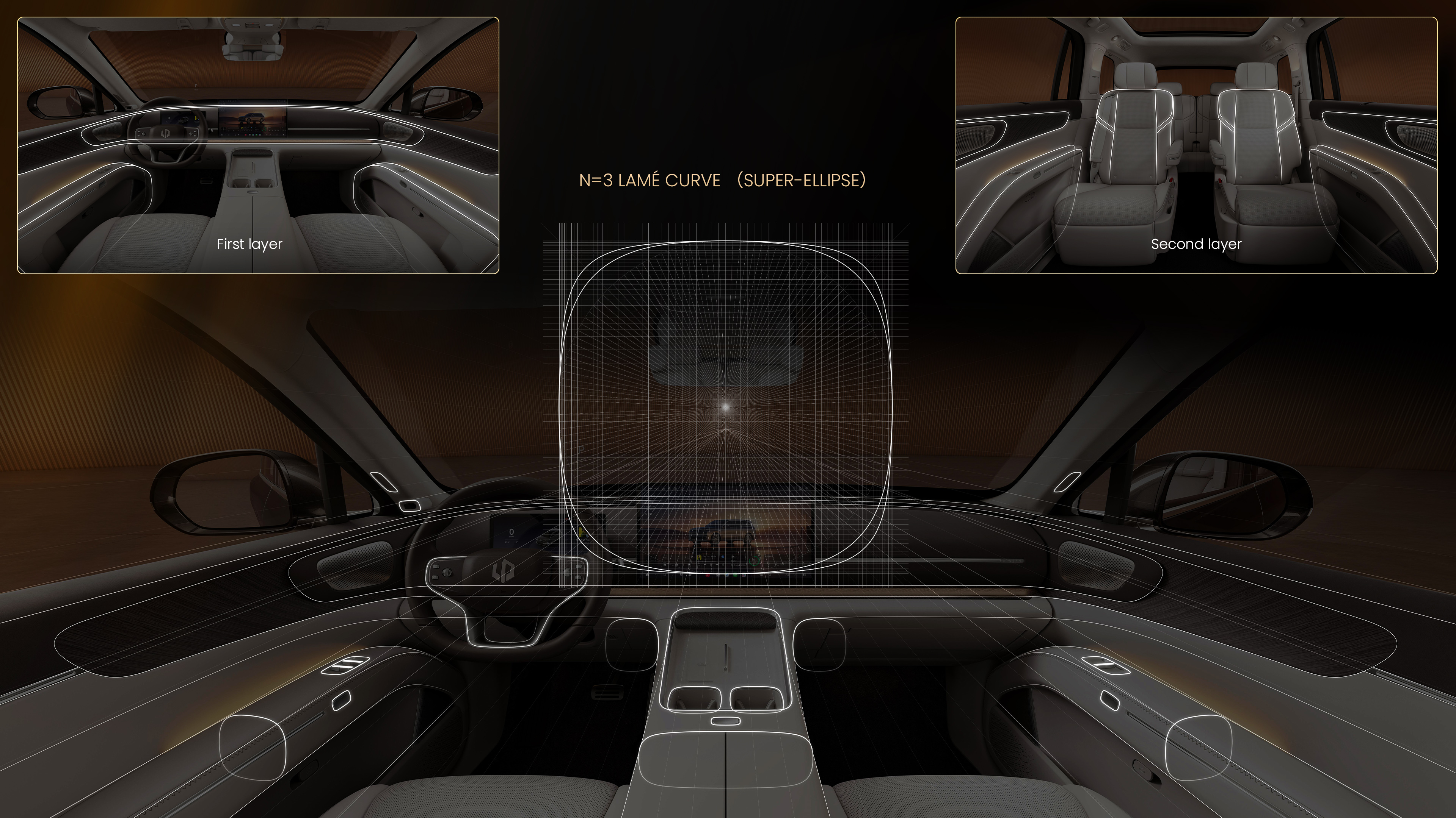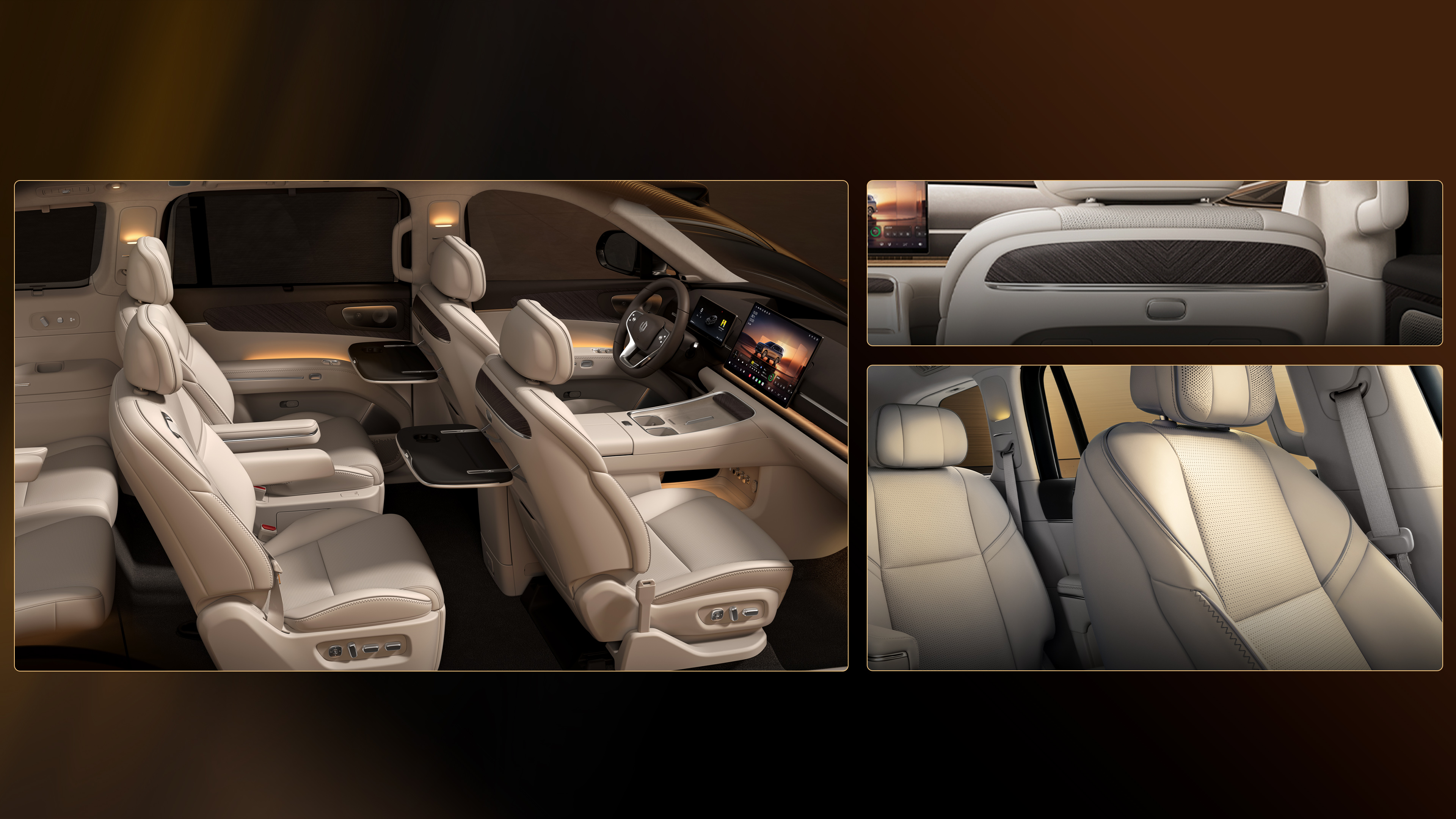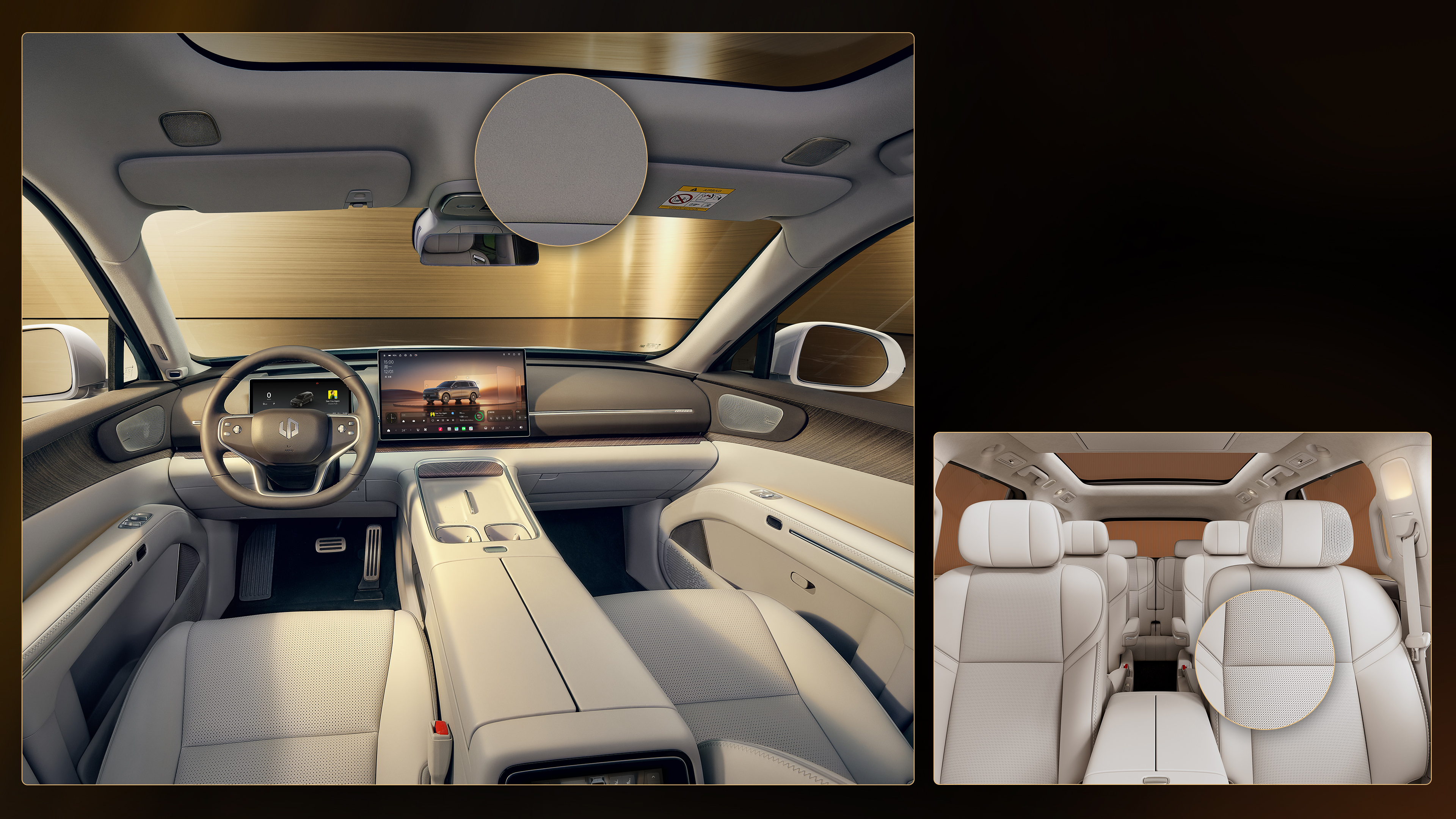 Grounded by 21-inch Visionary Realm wheels, the vehicle conveys a sense of upward momentum even at a standstill. With five exclusive exterior colors inspired from nature, the D19 maintains an air of composed elegance across any landscape. The genesis of the interior design centered on a singular question: How do we define the next tier of luxury? Our answer was to reject superfluous ornamentation and ephemeral trends, aiming instead for a sense of Timeless Decency. This philosophy is anchored in the spatial architecture. The Dual-layer Wraparound Cockpit features lines that flow seamlessly from the center console into the door panels, creating a protective, embrace-like gesture.