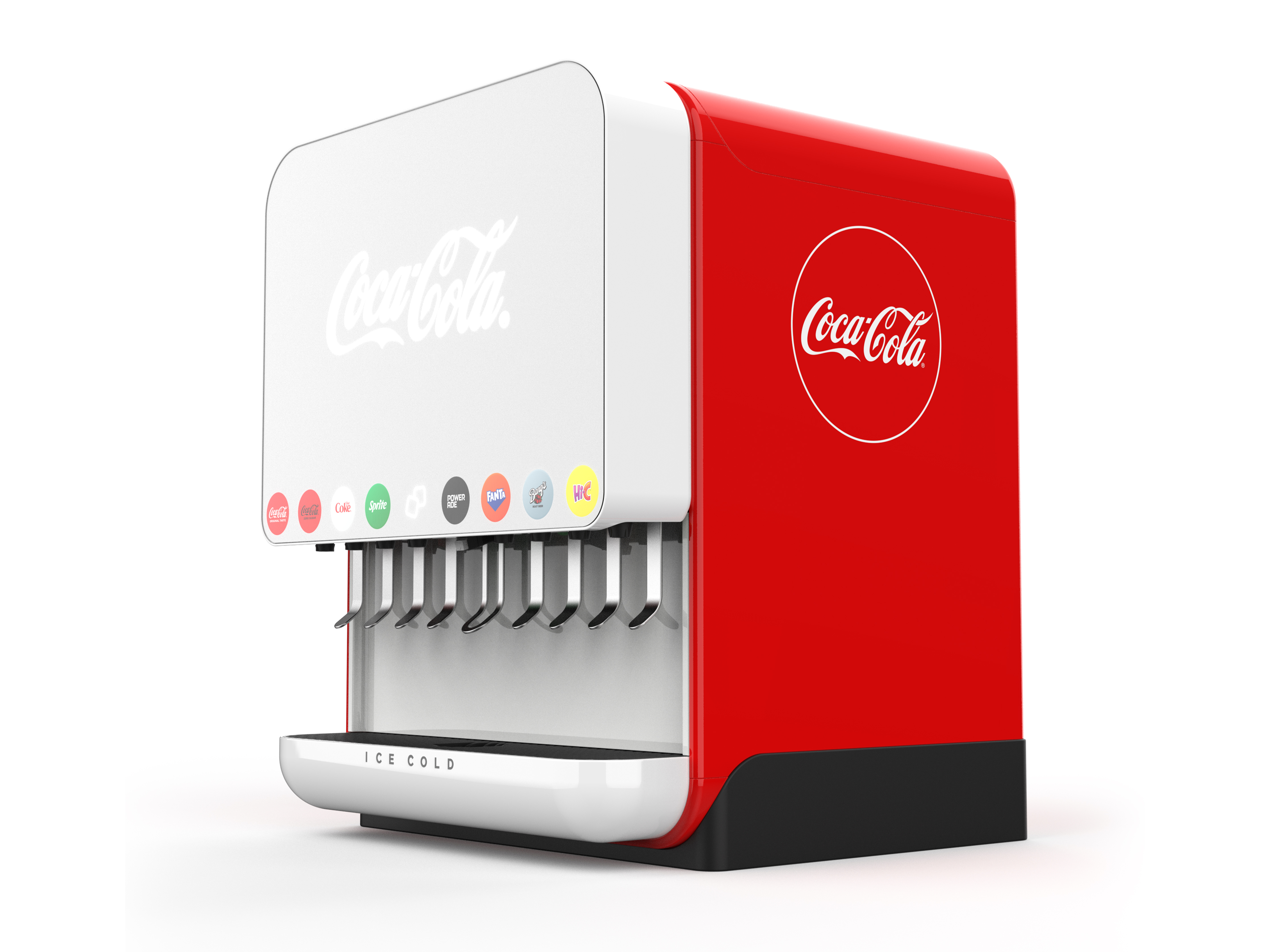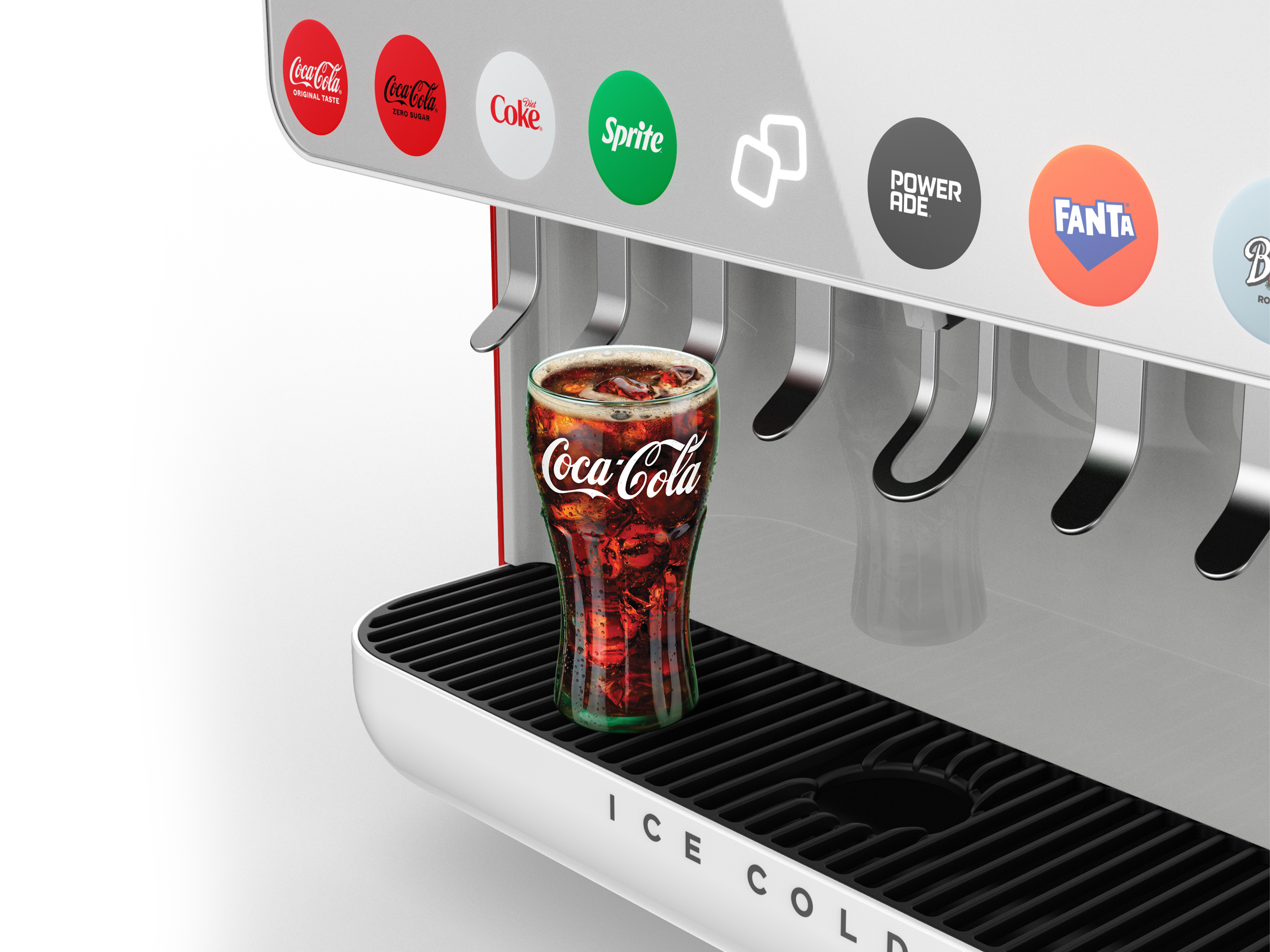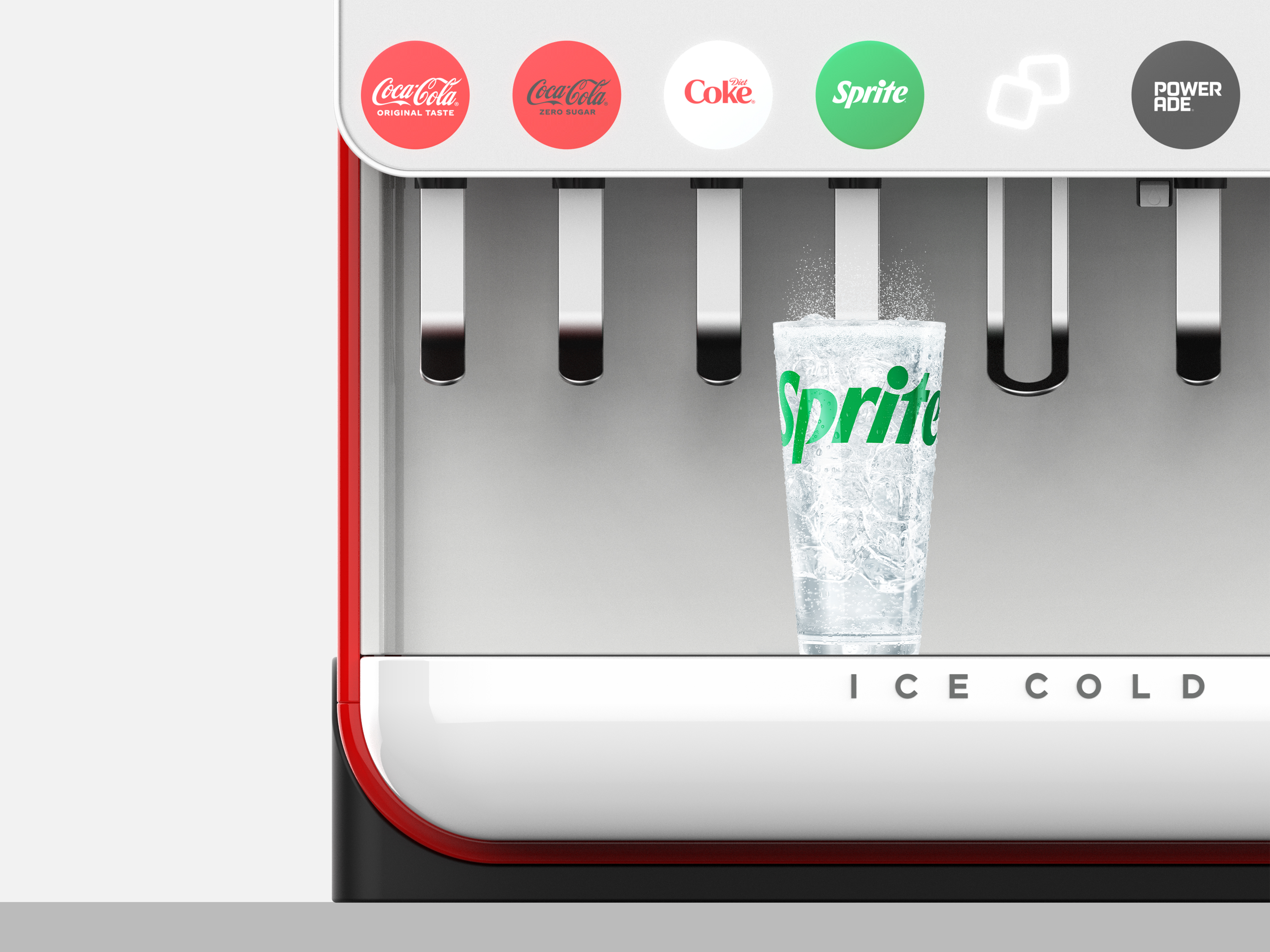 Dawn is Coca Cola’s reimagined 8 valve fountain dispenser, a modern design icon that transforms an everyday beverage transaction into a branded, memorable encounter.