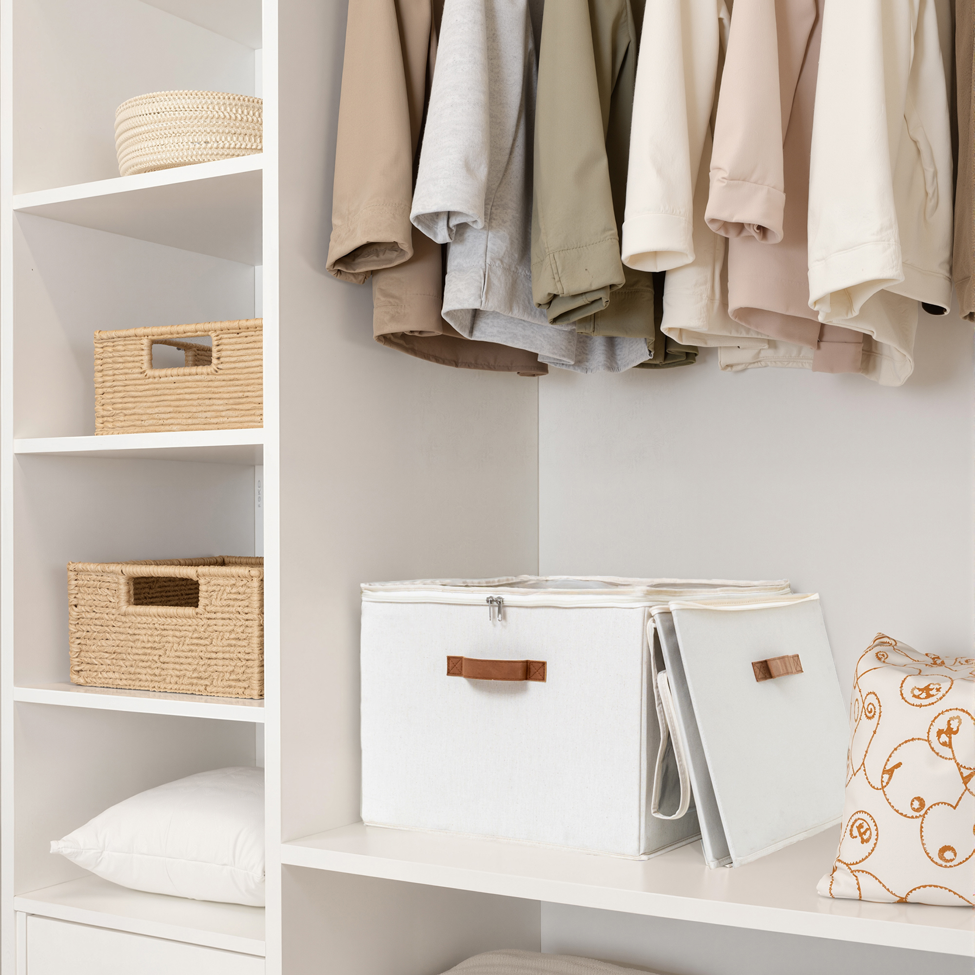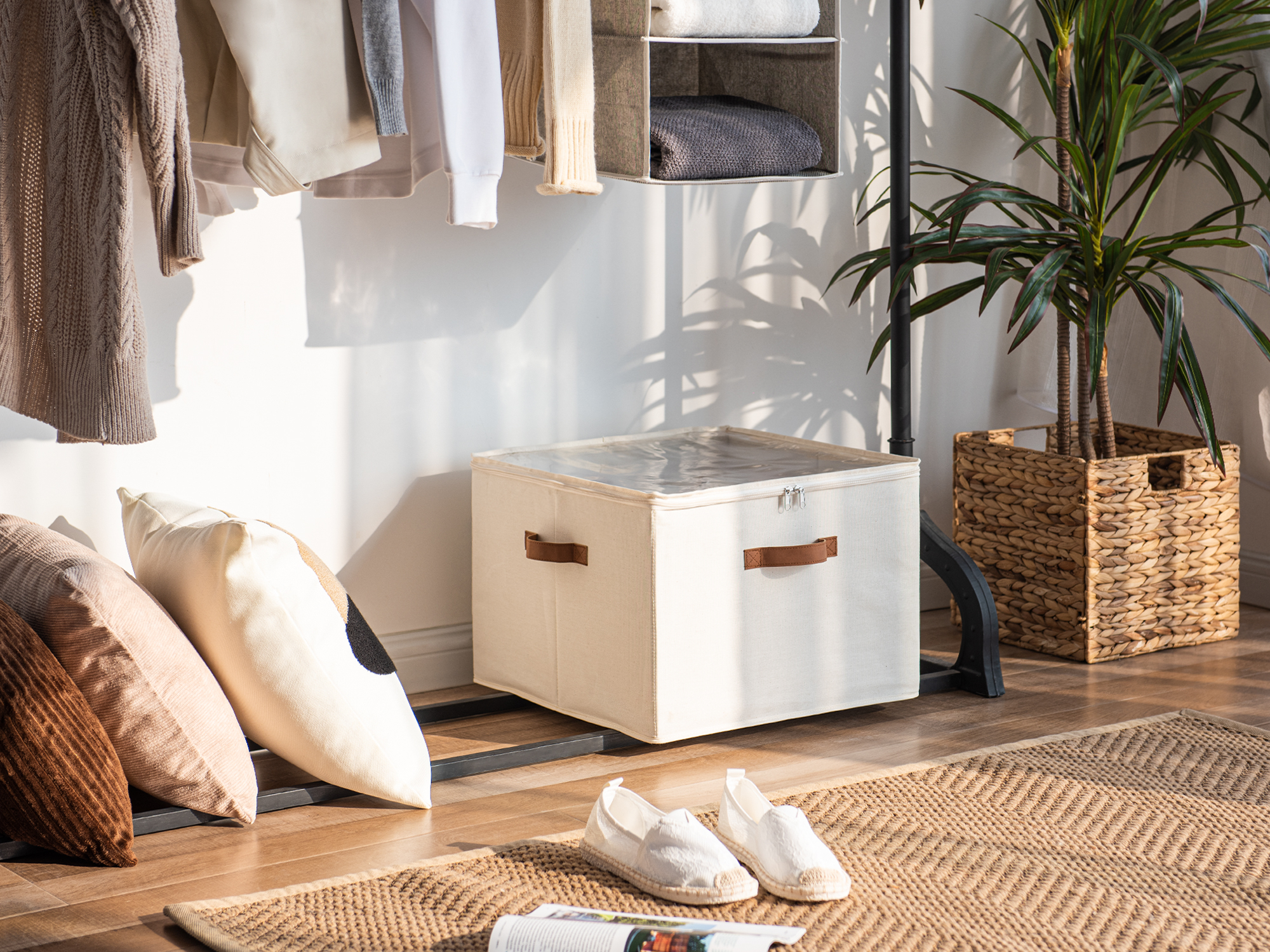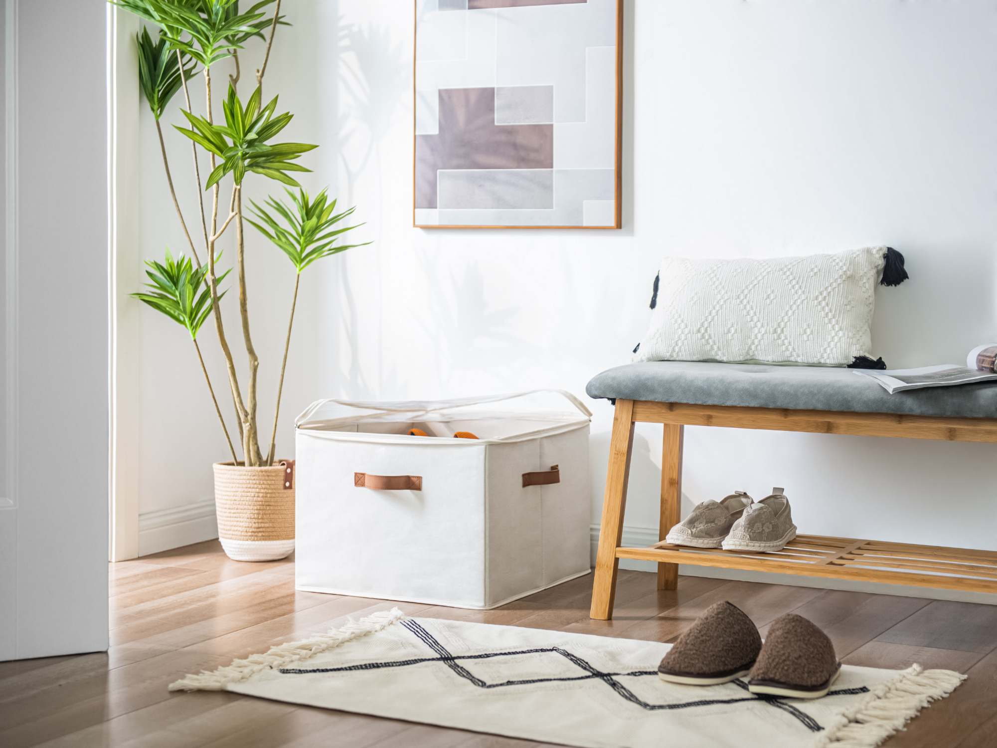 At its core is a PP adjustable divider system that allows quick reconfiguration of compartments to suit different quantities and sizes of shoes. The exterior is wrapped in textured fabric and paired with reinforced leather handles, while an internal fiberboard structure provides reliable support. This combination delivers both durability and a softer, more refined appearance that blends naturally into modern living spaces.