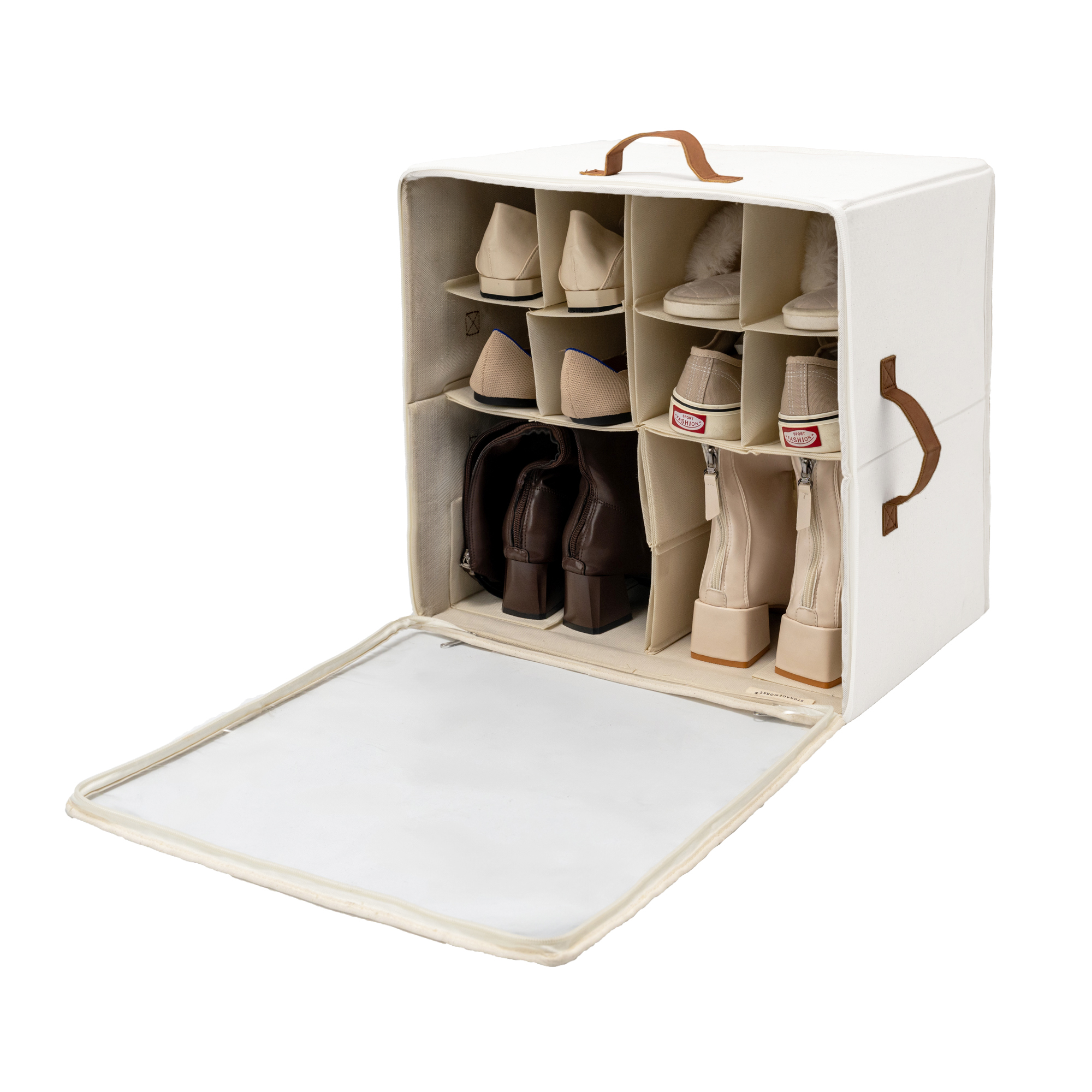 The Shoe Organizer is designed with small living spaces in mind, moving away from fixed compartments to a flexible internal layout that adapts to different types of footwear. High-top shoes, flats, and sneakers can all be stored with ease, reducing clutter and compression while keeping everything clearly arranged and easy to access.