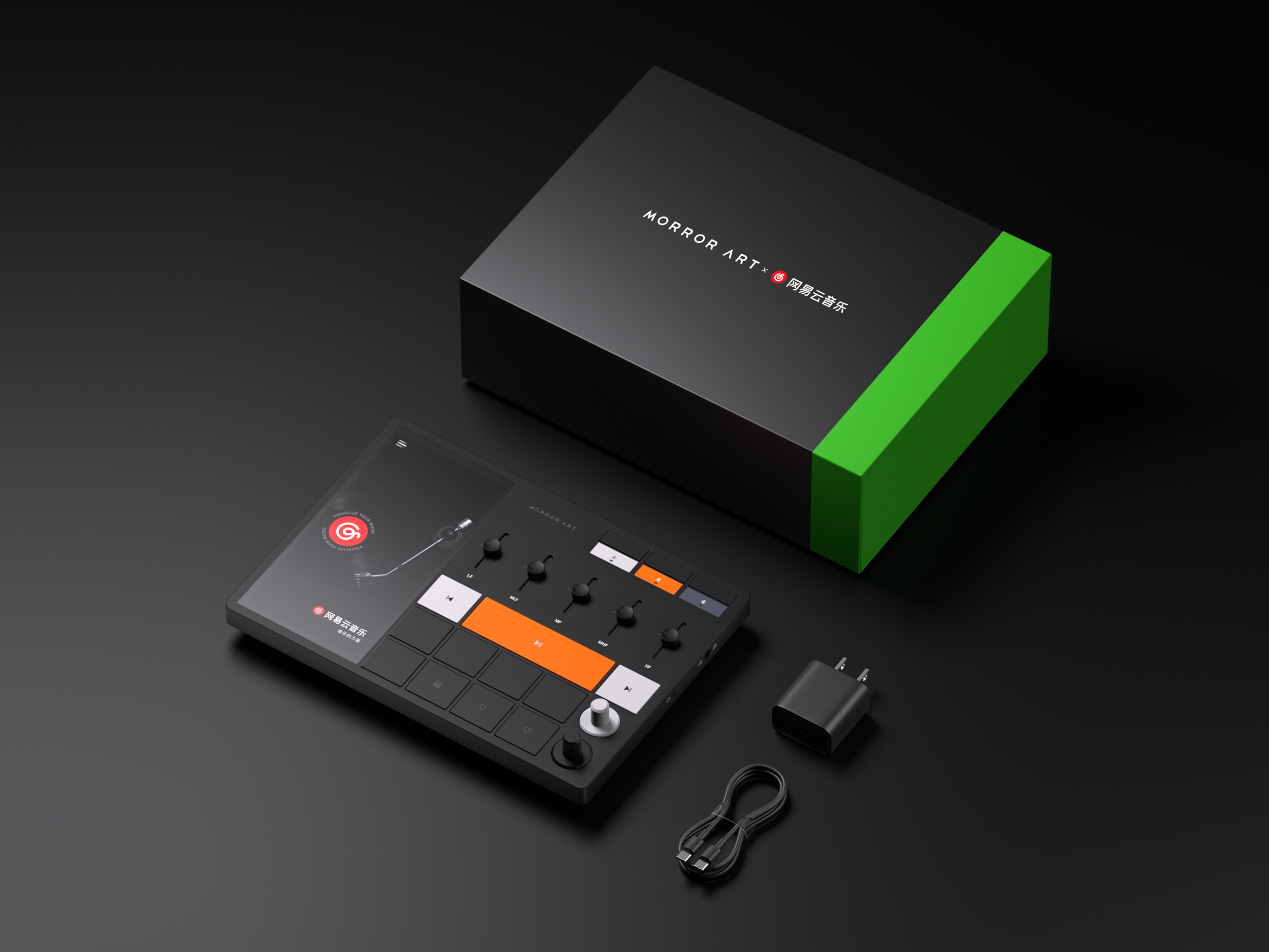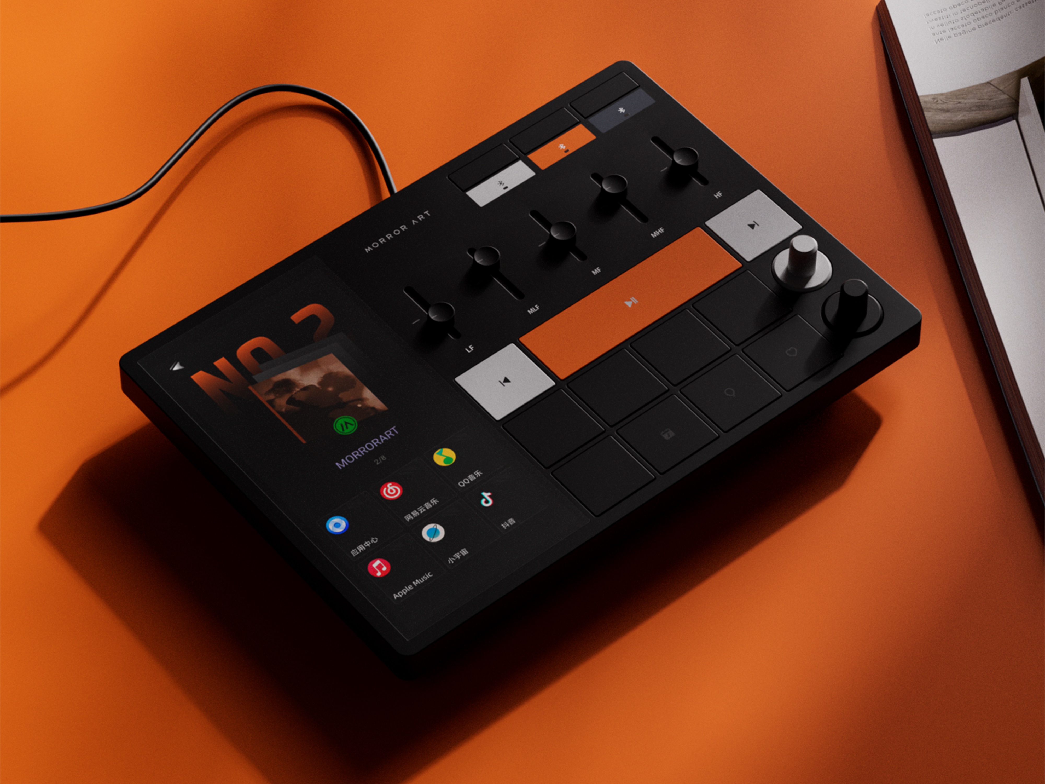 Inspired by professional MIDI controllers, the Music Hub 1 combines a modern touchscreen with classic physical buttons, balancing modern technological style and retro charm. It supports diverse audio adjustments: a vocal control knob and EQ faders allow fine and personalized tuning to sound details, while eight customizable shortcut keys allow the customization of frequent operations such as switching sound scenes or playlists according to personal habits, realizing “one-press” access to a personalized sound environment.