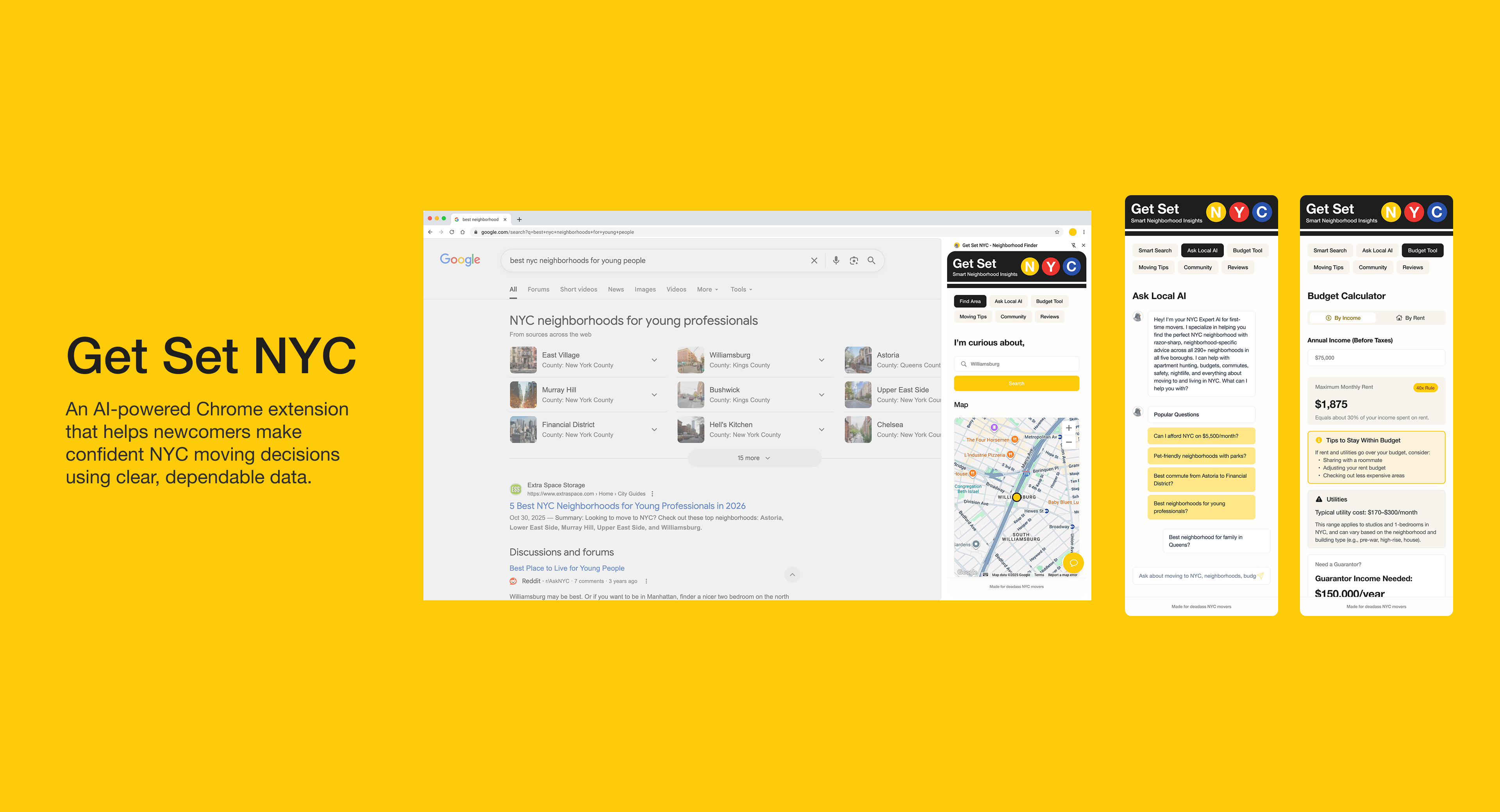 Get Set NYC is an AI-powered Chrome extension designed to make moving to New York City feel clearer, calmer, and far less overwhelming.