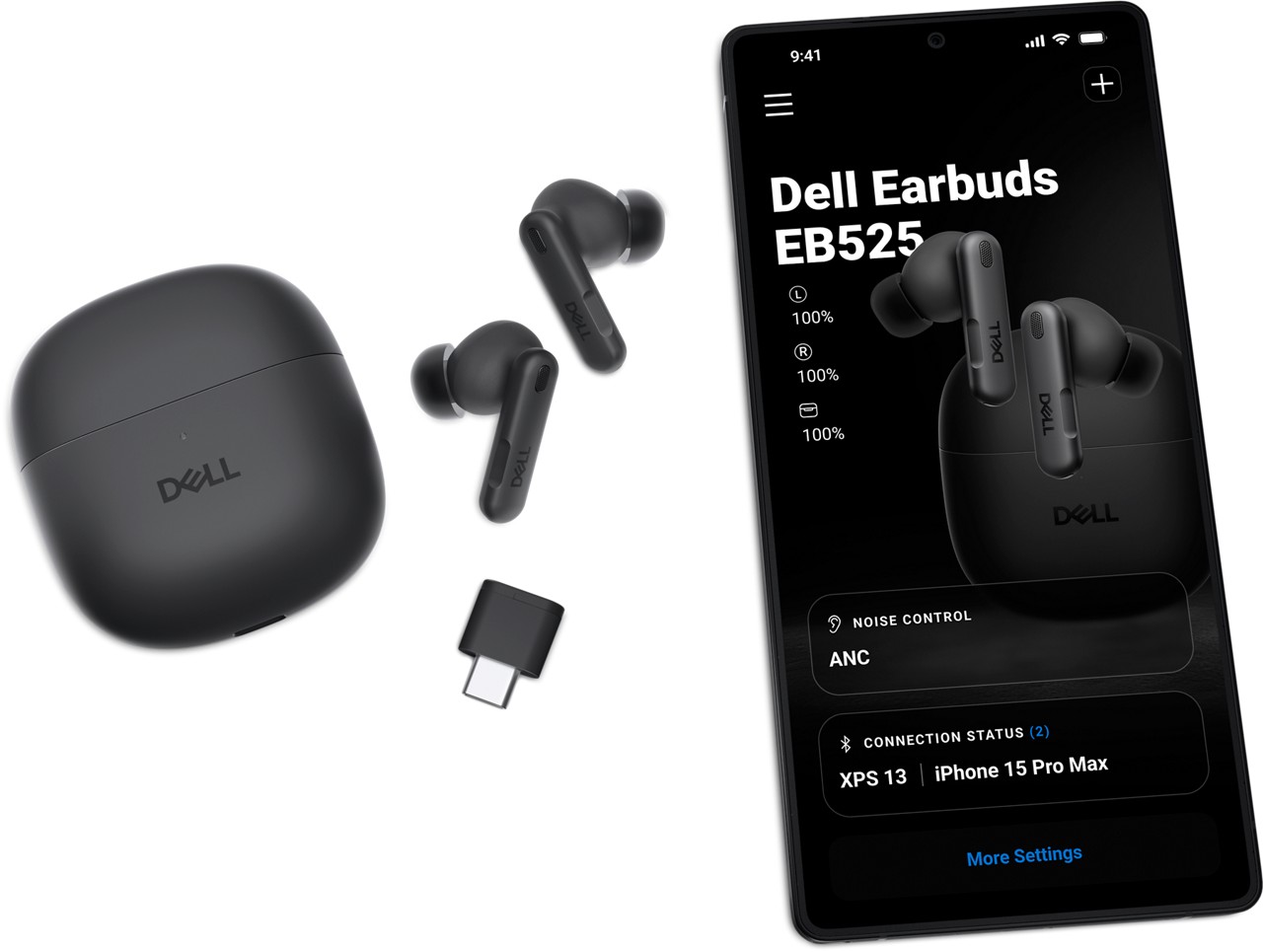 The EB525 marks Dell’s first in-house design for true wireless earbuds, delivering a modernized value proposition built around ergonomic comfort, versatile use, dual connectivity (Bluetooth & dongle), active noise cancellation (ANC), wireless convenience, pocket-ability, one-hand operation, and well-differentiated controls for intuitive assurance.