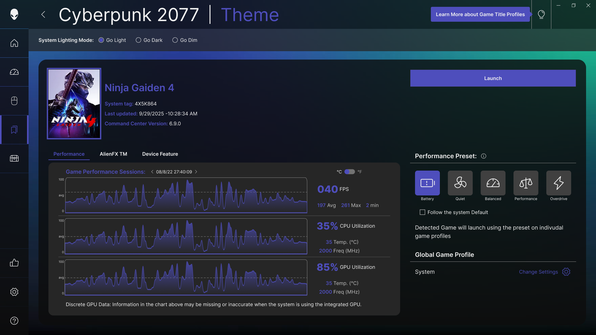 AWCC offers customization that scales to every level of effort and technical skill, from effortless, automated setup to deep, enthusiast‑level tuning. Users can create profiles that adjust CPU, GPU, thermal behavior, and lighting to match their preferred style, while integrated overclocking and real‑time monitoring keep advanced controls approachable and safe. These profiles can be tied to specific games, allowing AWCC to apply the right settings automatically at launch. Players get the personalization they want, and their system configures itself, allowing gamers to spend less time preparing and more time playing!