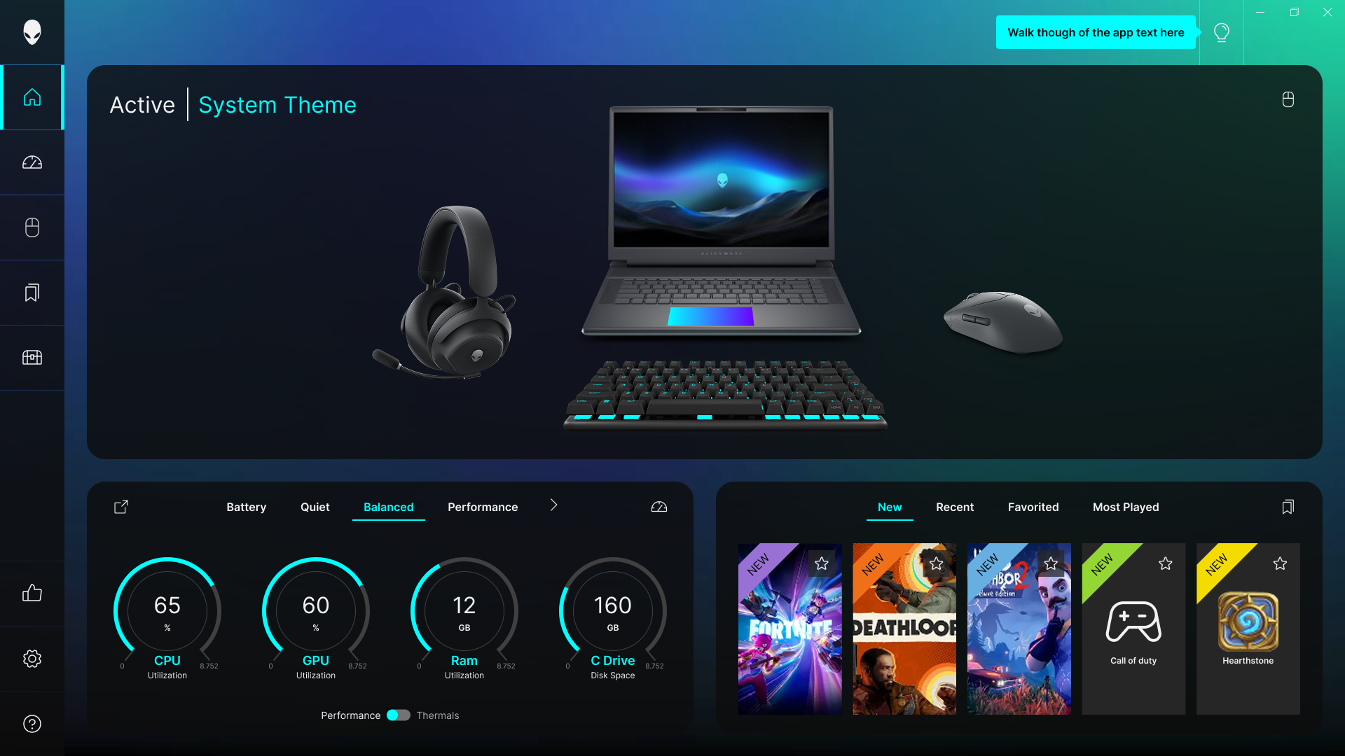 AWCC reflects the same design spirit that shapes Alienware hardware, creating a unified experience across the ecosystem. Its refined navigation and high‑quality product imagery showcases each user’s actual hardware and updates to reflect their customizations, allowing the interface to celebrate the device they own. By treating performance, AlienFX lighting, and visual representation as natural extensions of Alienware systems, AWCC maintains a cohesive design language with unmistakable Alienware character.