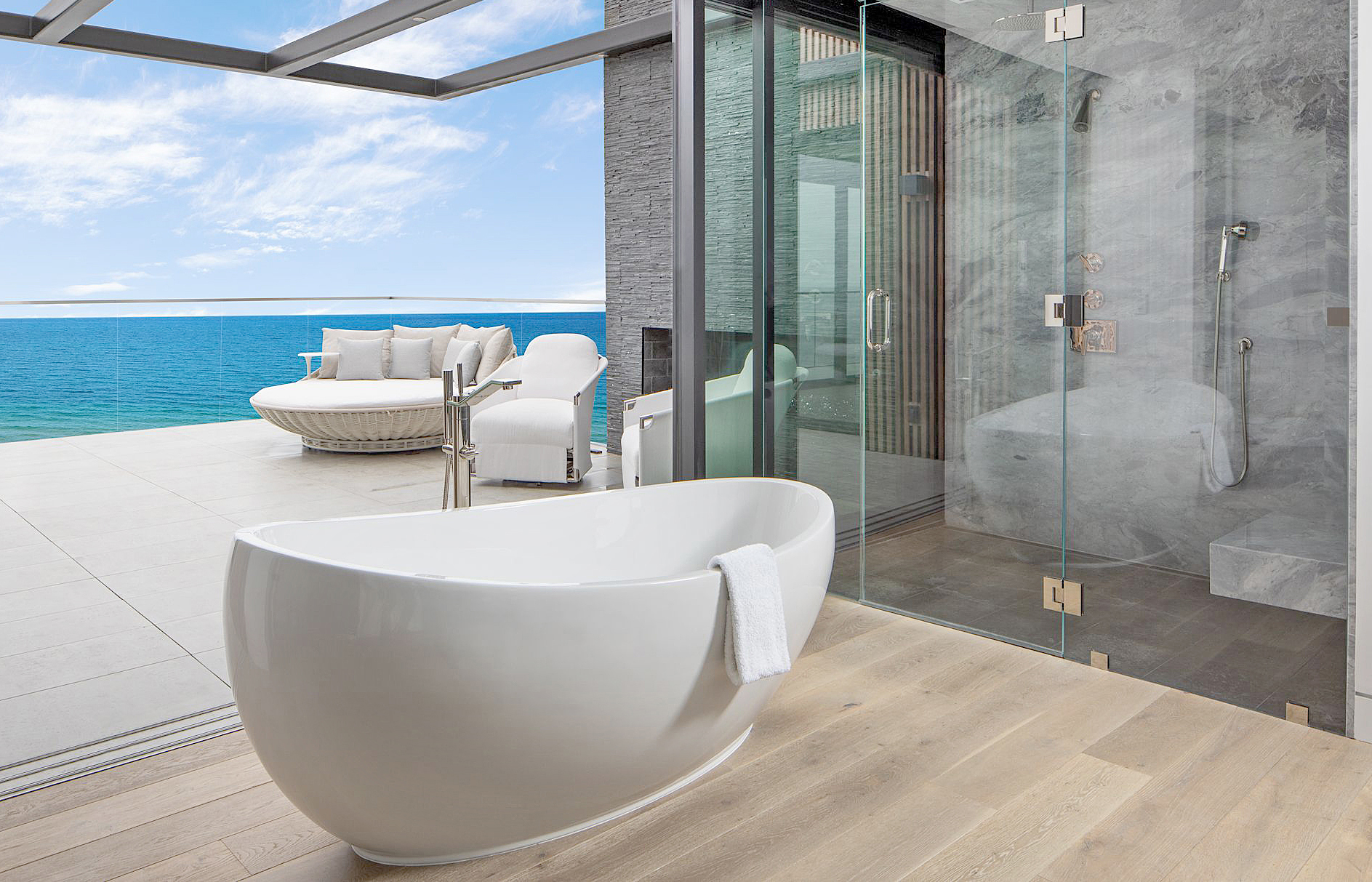 Crafted from US-produced acrylic, the non-porous surface is engineered for durability, ease of cleaning, and long-term performance. The form is defined by sweeping curves that project outward with a sense of movement, transforming the tub into a visual focal point while maintaining functional restraint.