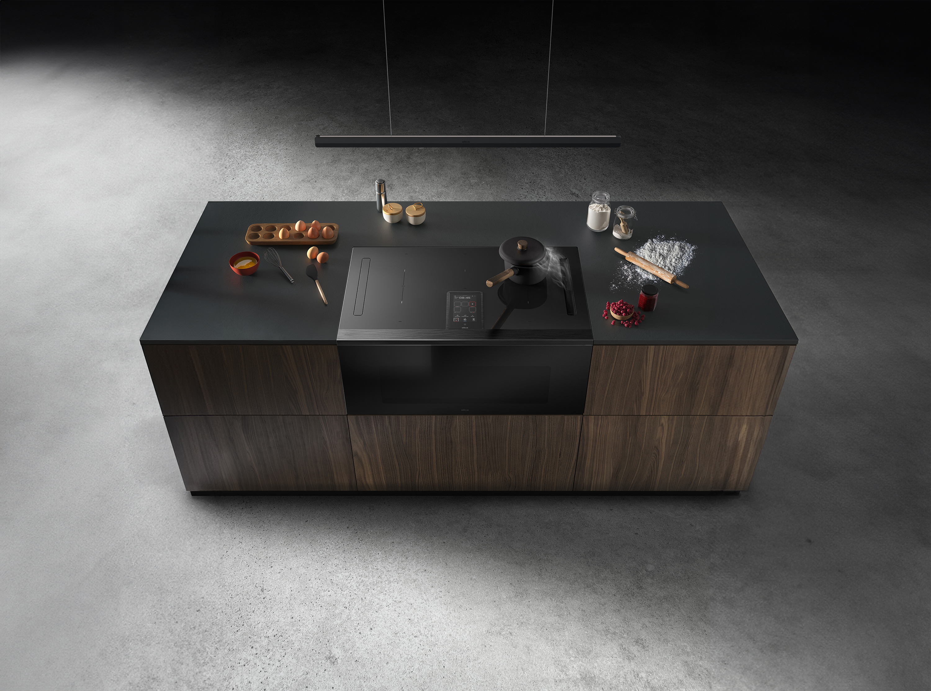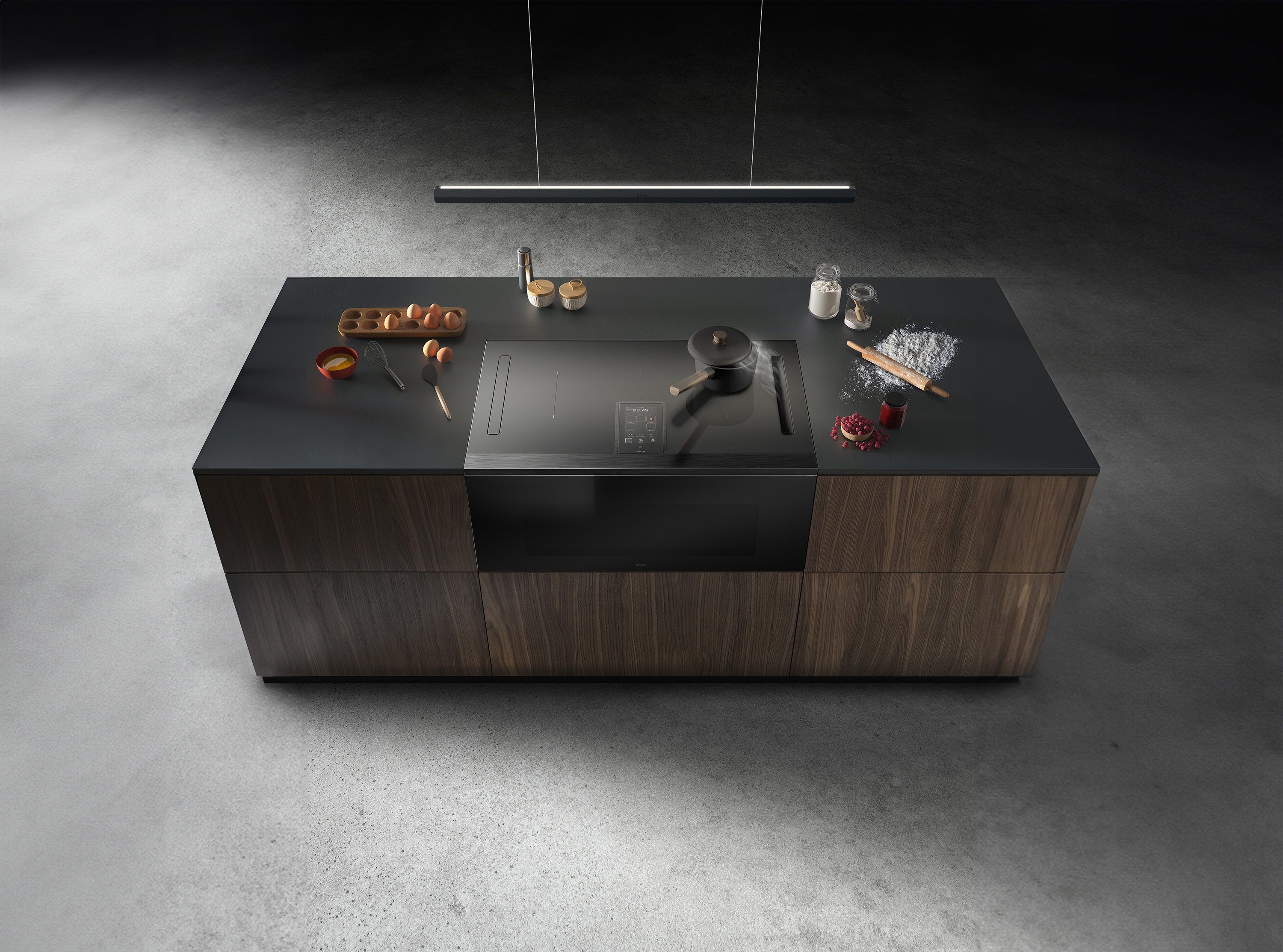 Luna is Elica's new interpretation of kitchen lighting: an advanced system designed to accompany every movement on the extractor hobs and Lhov, ensuring targeted visibility while simultaneously creating the ideal atmosphere for the home. More than a lamp, it is a design element that transforms the culinary experience into a perfect balance of functionality, comfort, and emotion. Its essential and minimal design goes beyond form to become interaction. Each line is designed to create a natural and immediate connection with light, uniting technology and everyday life. Luna interprets the needs of the contemporary kitchen, where high performance and aesthetic quality coexist without compromise. The dual lighting concept offers a complete experience: precise, controlled technical lighting for the extractor hobs and the Lhov, and soft, diffused ambient lighting that envelops the space with warmth. Direct lighting enhances colors, details, and textures, eliminates glare, and improves visual comfort throughout every stage of preparation, making every gesture safer, simpler, and more efficient. Ambient lighting, on the other hand, modulates the kitchen space, making it welcoming and convivial. A discreet luminous presence accompanies not only the preparation of dishes but also moments of sharing, transforming the kitchen into a place to be experienced as well as used. Interaction is fluid and intuitive: gesture control allows you to manage the light contactless, with a simple wave of the hand. Compatibility with the main voice assistants and the Elica app expands the experience: the light responds to your voice, adjusts remotely, communicates with the extractor hob, automatically adapts to the conditions of use and indicates any maintenance needs. The balancing system allows you to precisely adjust the lamp's height, ensuring maximum flexibility and consistently optimal lighting. The Dimmer Light and Tune White functions allow you to adjust intensity and tone, from warm to cool white, in harmony with the environment and the different times of day. With Luna, light does more than illuminate: it interprets, accompanies, and enhances. It is technology that becomes invisible, design that becomes an experience, light that furnishes and lives alongside those who choose it.