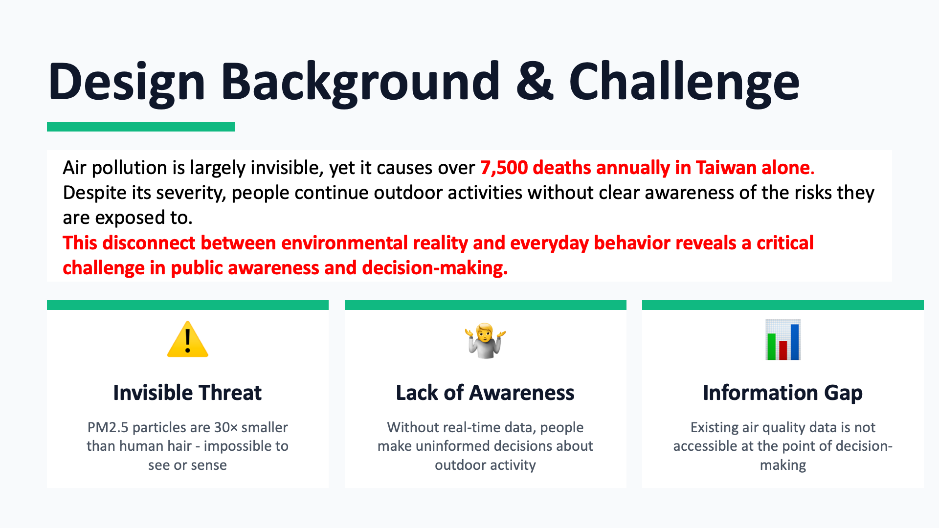 This conceptual design project effectively addresses the critical issue of air quality on campus, with a specific focus on identifying and mitigating health risks faced by students in high-pollution environments. To achieve this, the project aims to reduce exposure times through innovative technological interventions that provide timely alerts to both faculty and students.