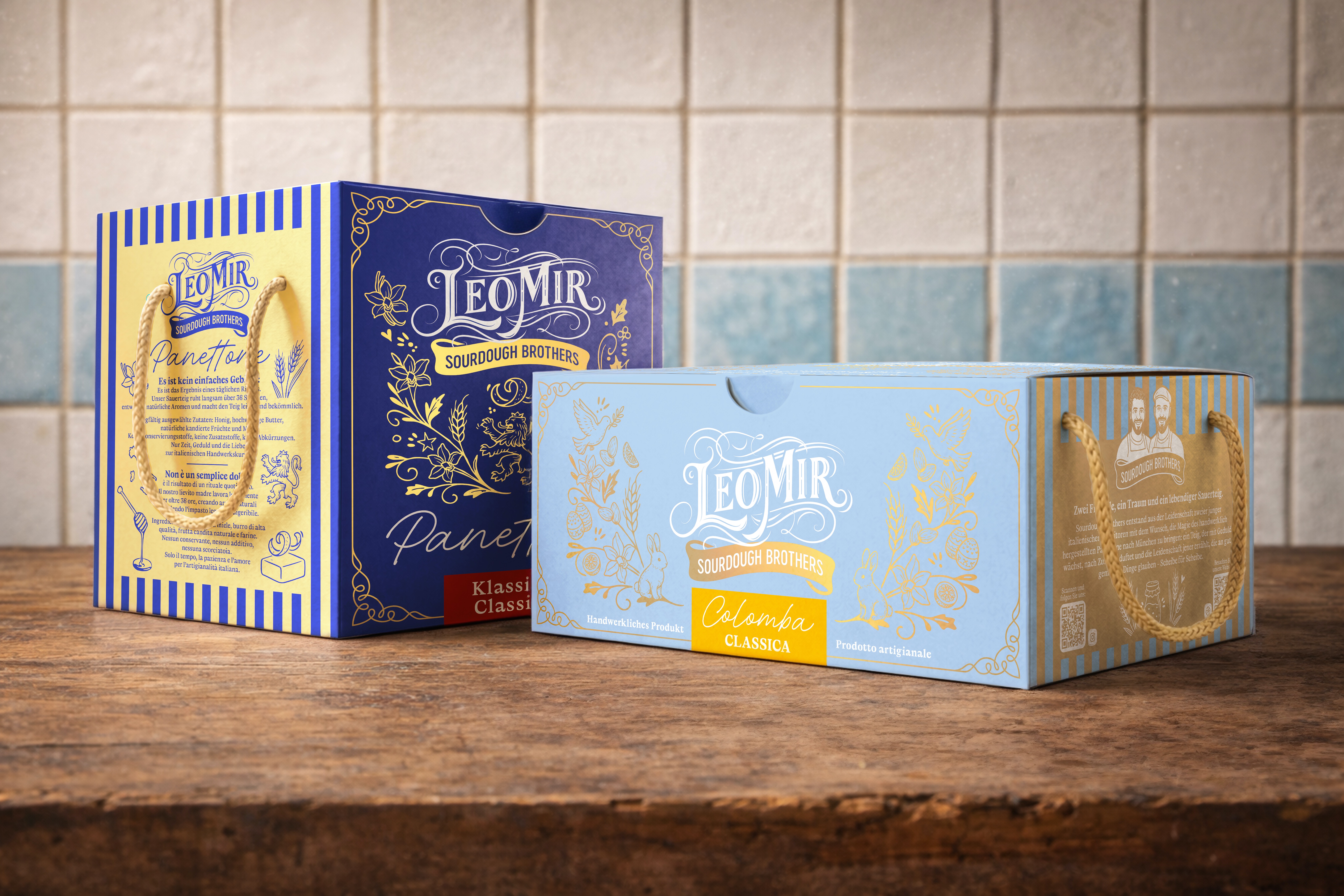 The project focused on developing packaging for the brand’s artisanal panettone and colomba, capable of expressing its Italian-German identity and standing out in the European premium market.