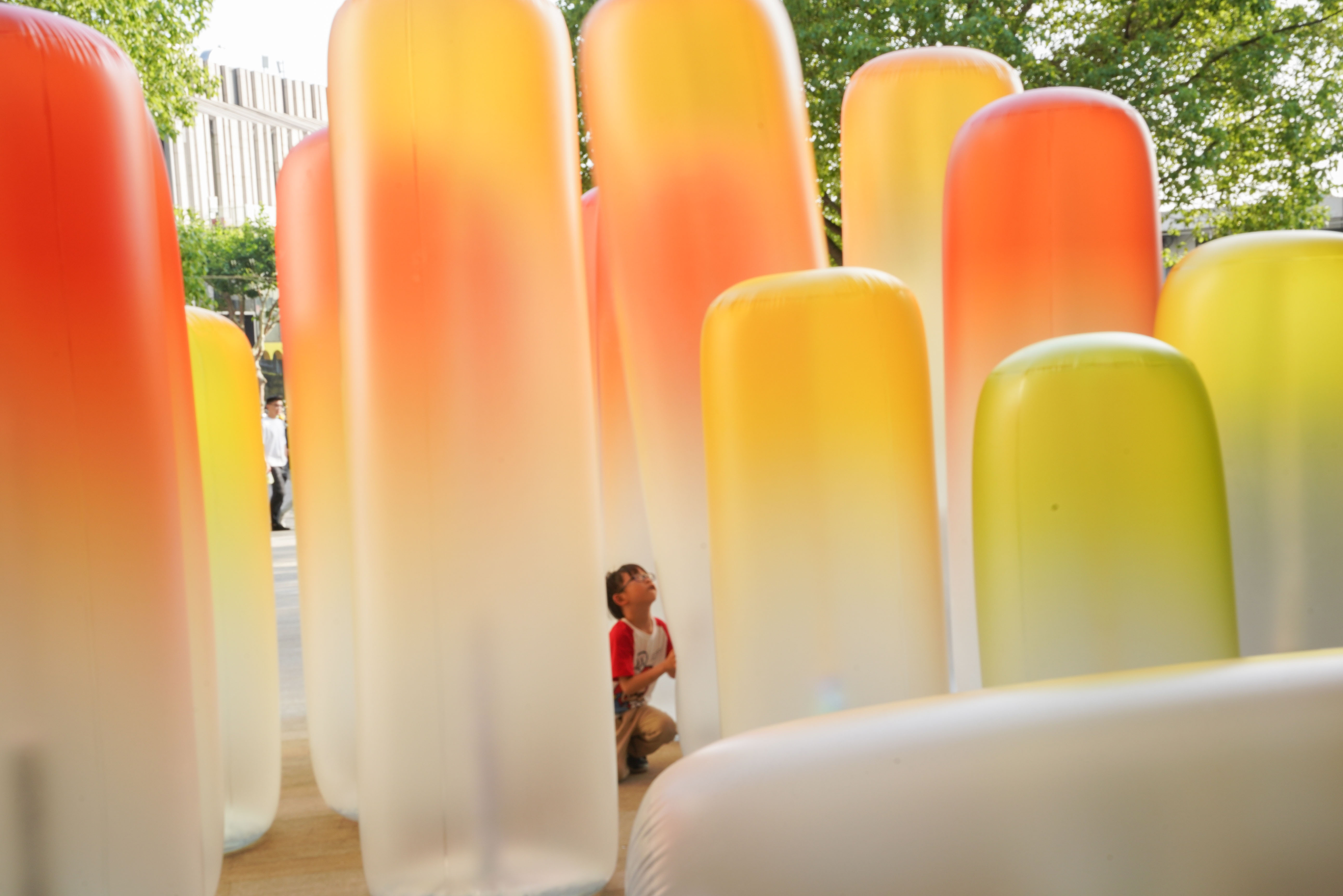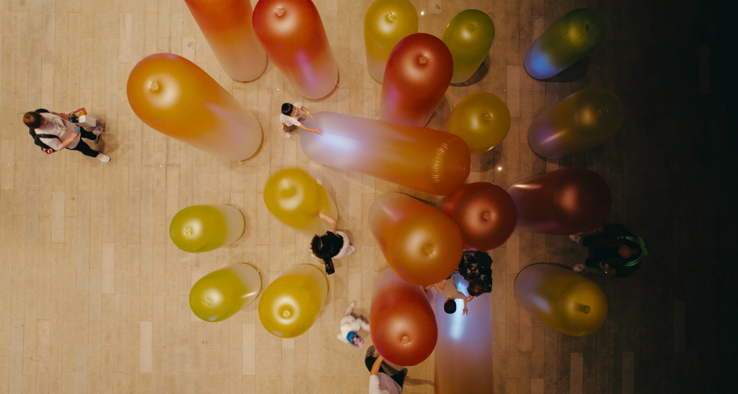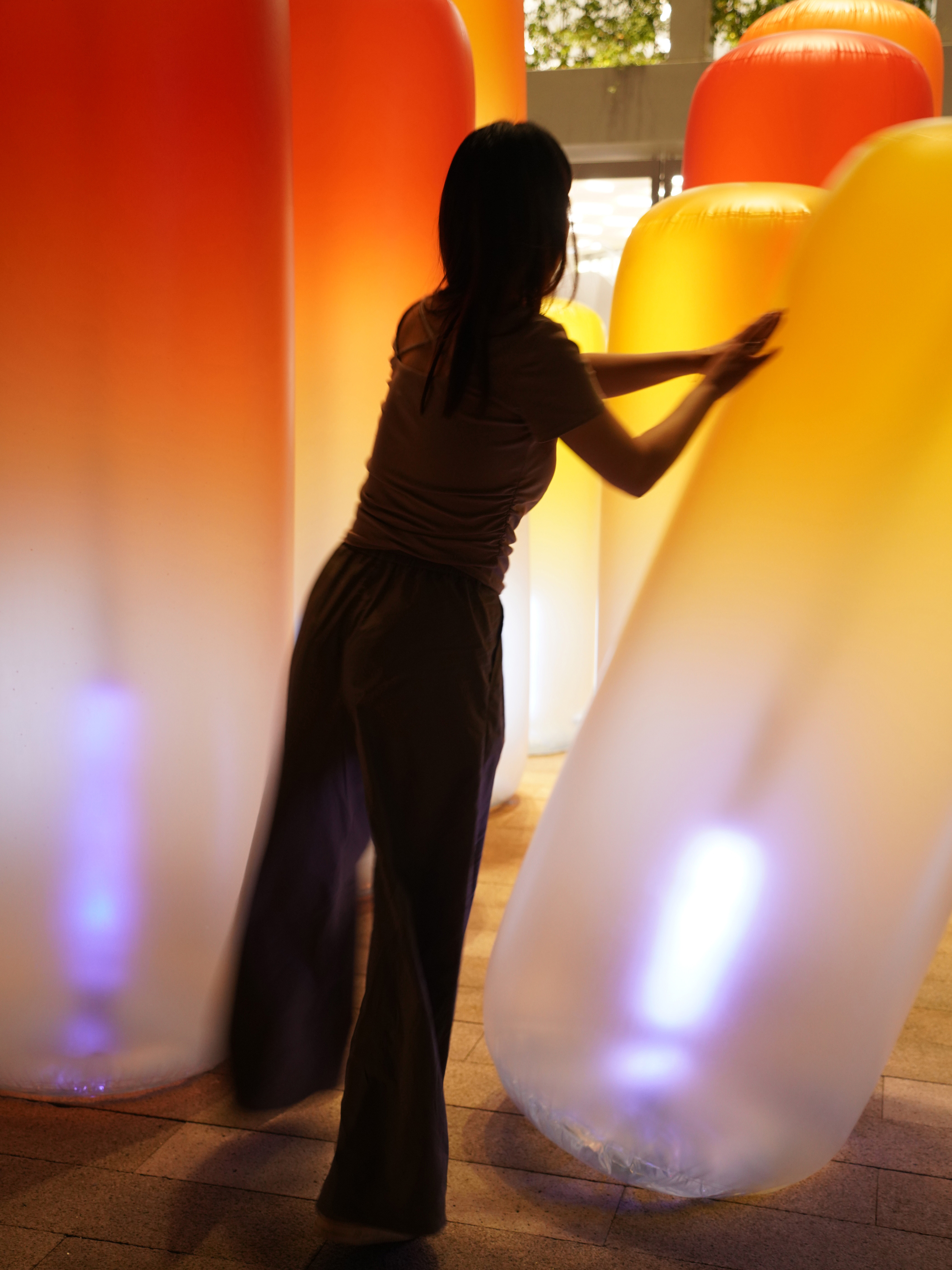 "Light Me Up ! " constructs an enterable “artificial seascape” through inflatable forms that mimic marine organisms and underwater habitats. As visitors walk through, touch, and inhabit the space, the internal lighting shifts in a breathing rhythm, allowing the installation to appear as if it were a sentient life form—awakening, shimmering, and responding through interaction.