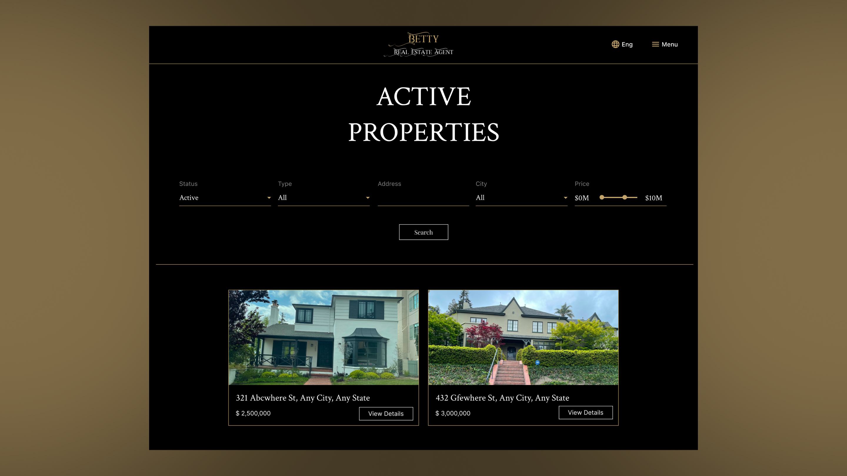 Comprehensive property management features include categorized Active and Sold listings, filterable browsing, and efficient status updates or archiving. Each single property page is designed with strong visual hierarchy and integrated tour booking functionality. Automated email notifications linked to specific properties enhance administrative organization and efficiency.