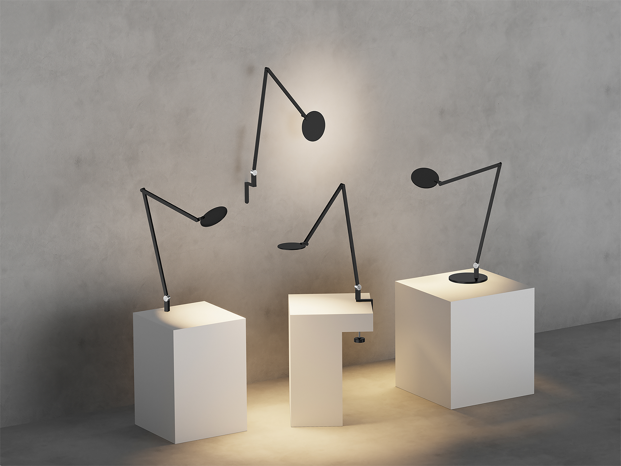 Inspired by Bauhaus minimalism, Olbia's clean, flowing lines embody "form follows function." Every element is functionally driven: the dual-arm proportions are meticulously refined to ensure both mechanical balance and a visually lightweight expression. Olbia integrates silently into a space, yet subtly becomes the focal point when illuminated.