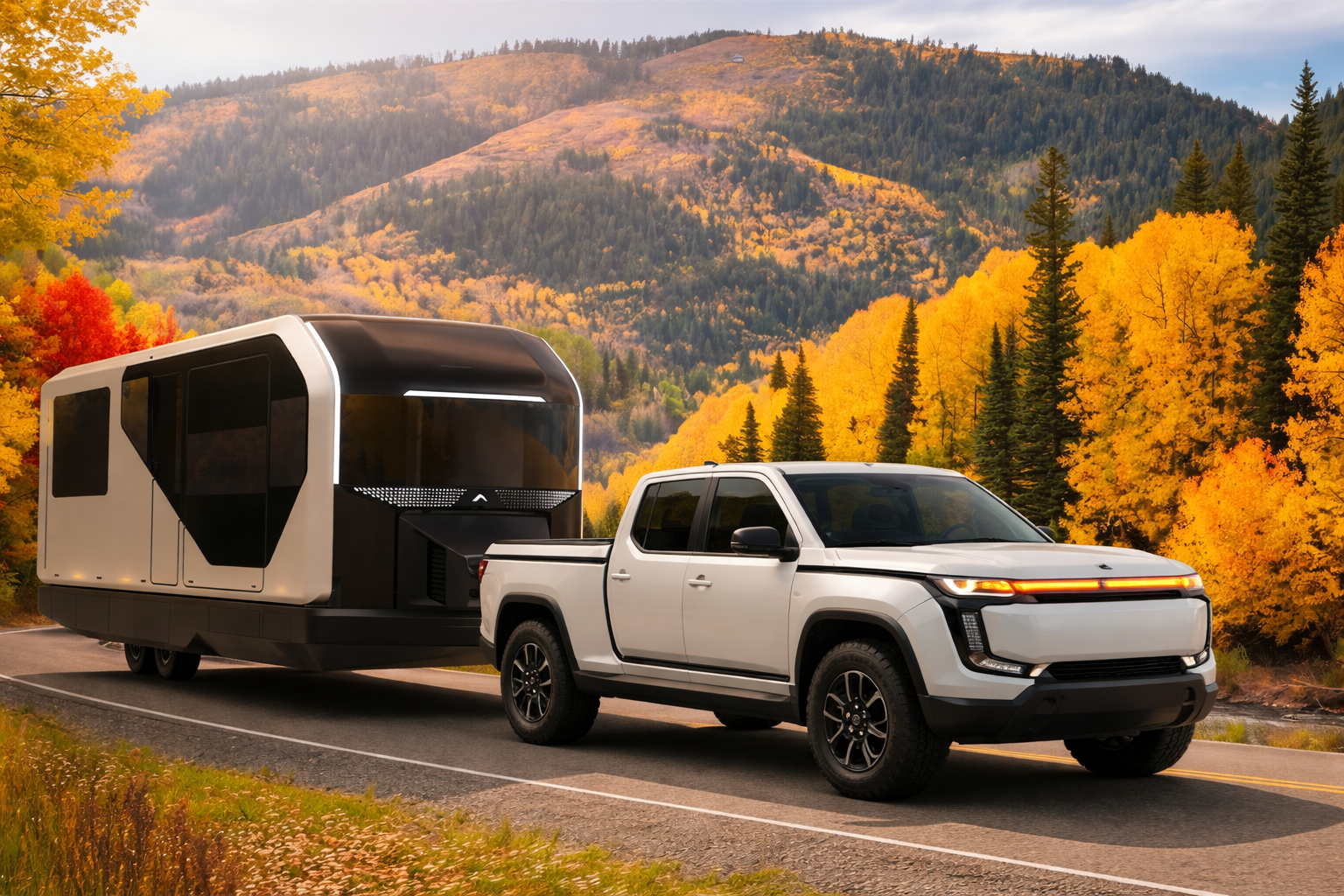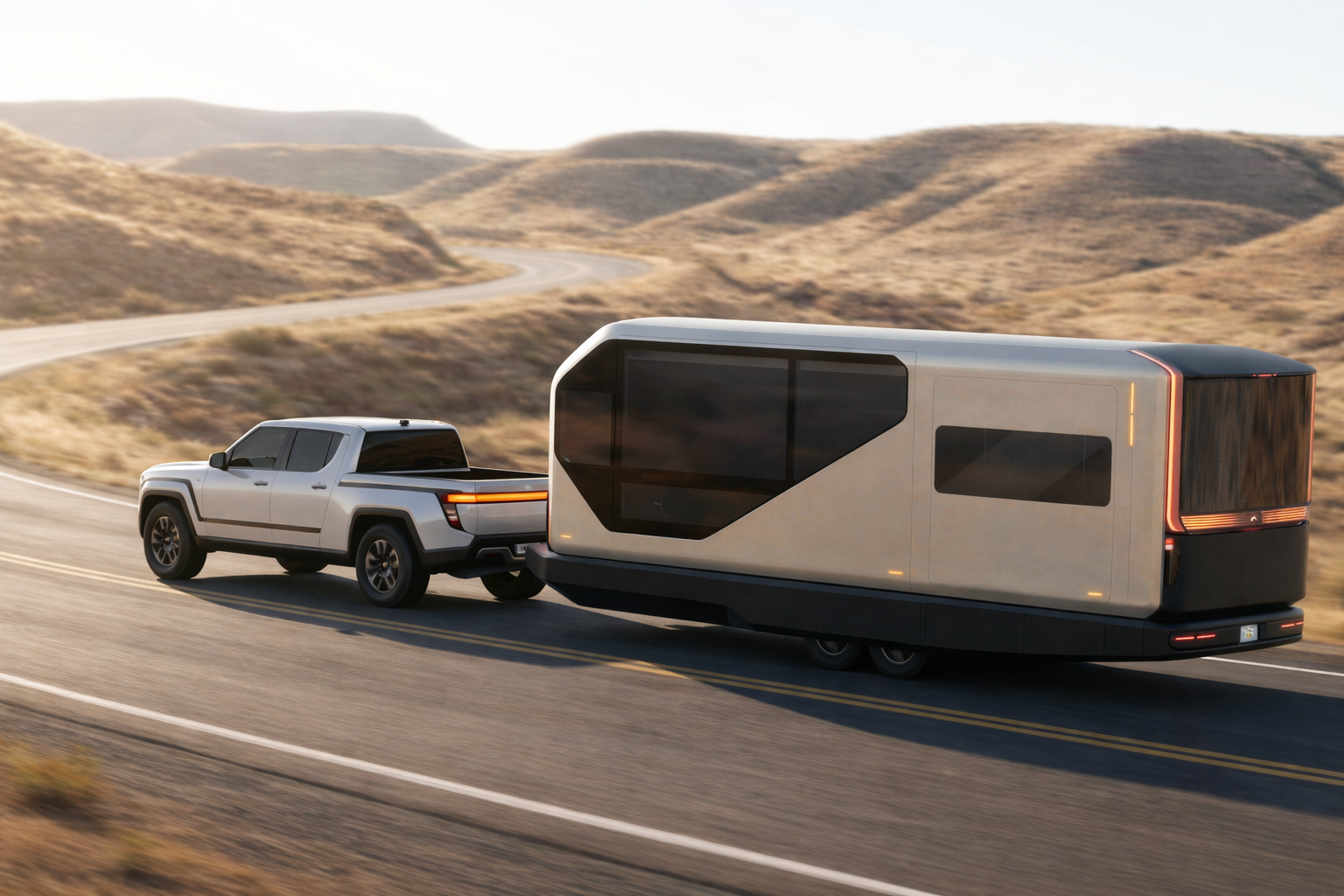 The AI Transformer Home Trailer (AI-THt) is a revolutionary 24-foot mobile living solution that leverages AC Future's patented expansion technology to transform from 190 to 400 square feet of premium living space. Unlike traditional trailers, the AI-THt eliminates the need for a front driving cabin, allowing the interior to double in size when fully expanded while incorporating flexible furniture, energy-efficient systems, and Smart AI integration to enhance daily living. The trailer's sophisticated exterior design combines architectural aesthetics with aerodynamic efficiency, creating a sleek, environmentally harmonious habitat that delivers superior towing performance and represents a new standard in sustainable mobile living.