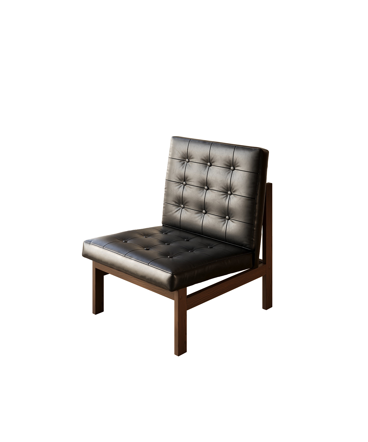 The design’s most distinctive feature lies in the combination of classic button-tufted upholstery and a minimalist exposed wooden frame. Traditionally associated with luxurious furniture such as Chesterfield sofas and vintage armchairs, button-tufting is reinterpreted here within a modern context. The chair features a clean grid-patterned tufted surface that forms an orderly visual rhythm while preserving the handcrafted texture and identity of traditional upholstery techniques. At the same time, the structure follows the modernist philosophy of “less is more,” removing unnecessary decorative elements and allowing the natural wooden frame to remain visible.