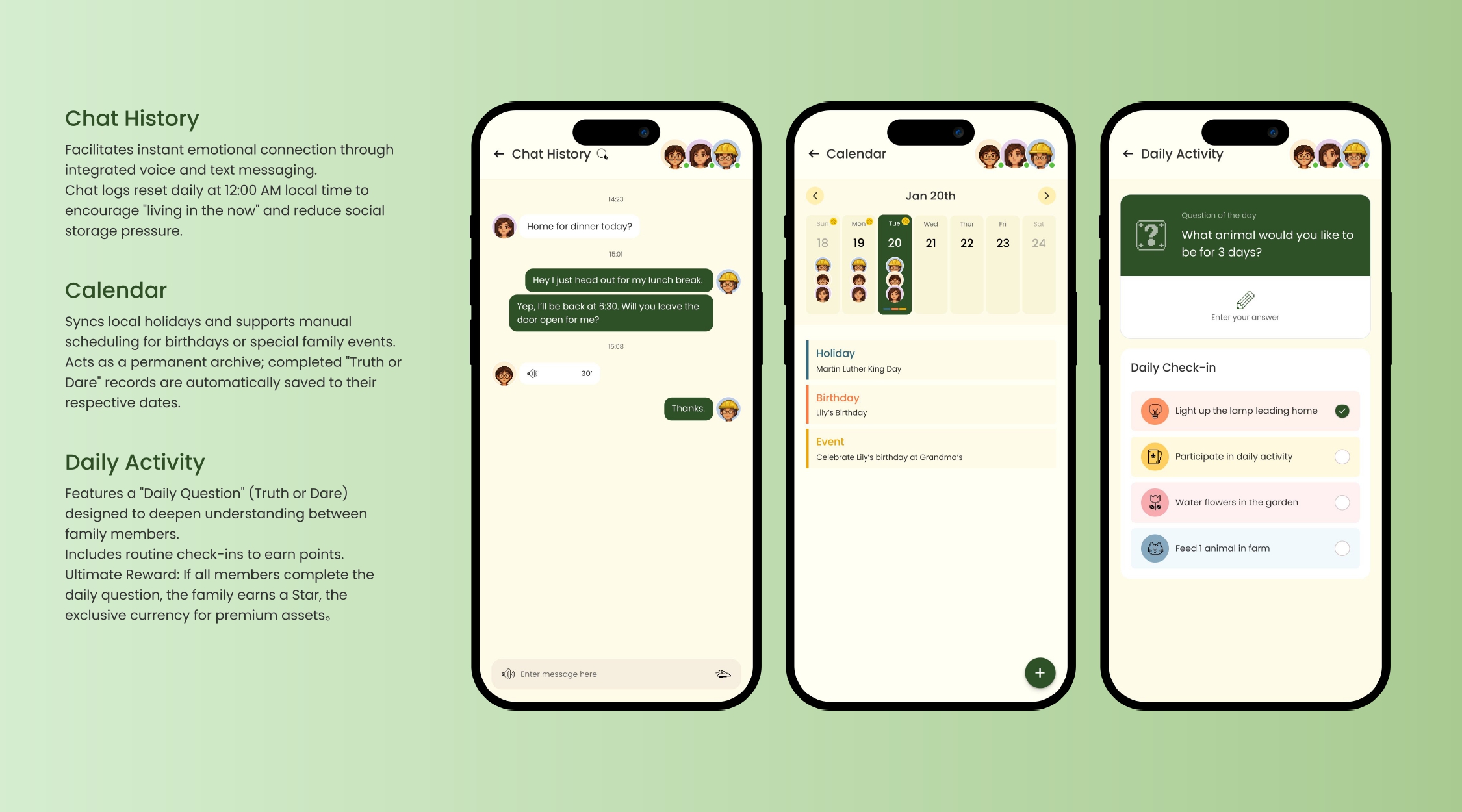 Family Re:Union explores a new model of communication based on presence rather than constant messaging.