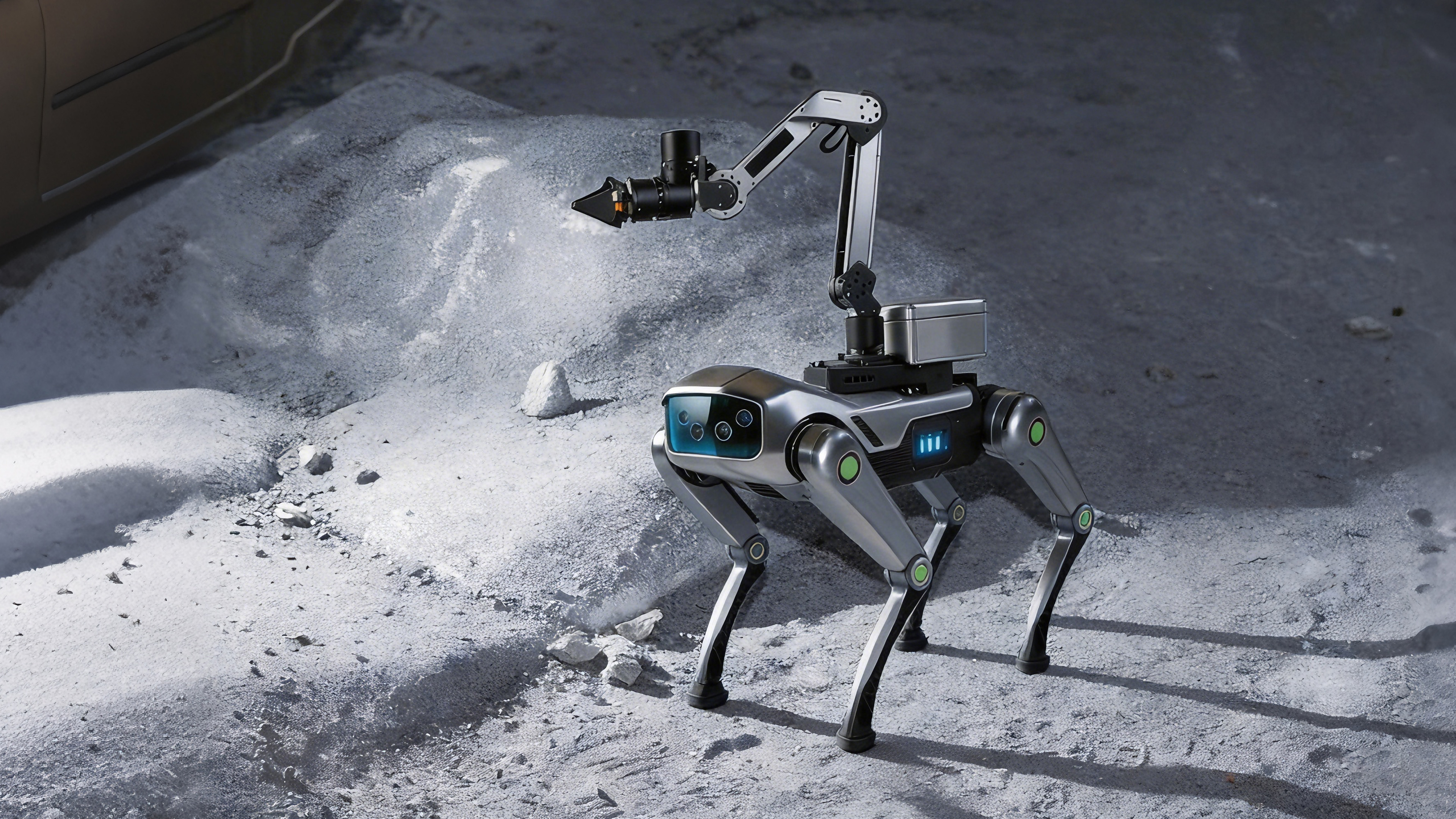 The Intelligent Geological Mapping and Geochemical Sampling Quadrupedal Robots system consists of three specialized units, Alpha, Beta, and Gamma, each designed for distinct field operations including deep soil drilling, automated sample collection, and full cycle rock sampling. Working collaboratively in complex mining environments, the system integrates mineral identification with continuous workflows from sampling to storage, enabling a more consistent and controlled approach to geological data acquisition.