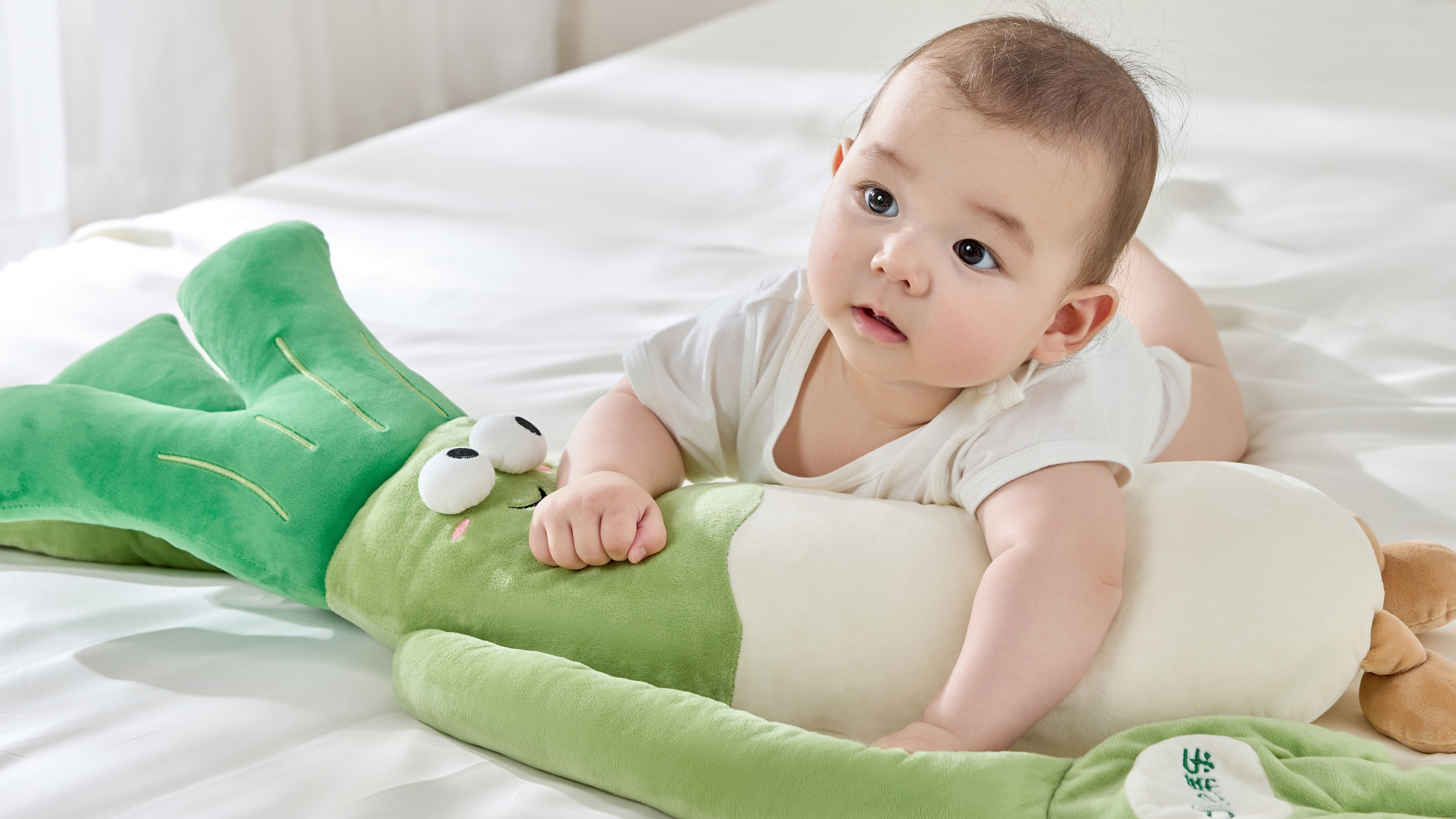 The scallion-inspired design draws from Chinese cultural symbolism, where “scallion” is a homophone for “cleverness,” representing parents’ hopes for their children’s bright future. With its gentle green color and playful form, the pillow becomes not only a functional product but also a comforting companion during early childhood.