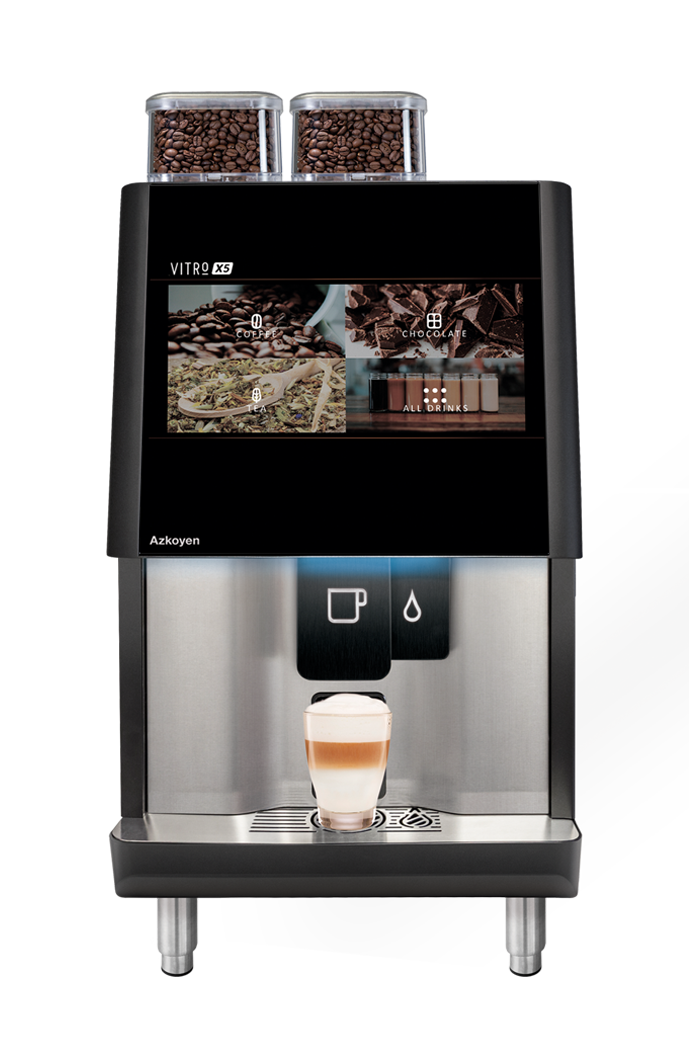 The Vitro X5 Touch is a premium, high‑performance coffee machine designed for workplaces and high‑traffic self‑service environments that demand variety, autonomy, and a refined user experience. Equipped with double bean hoppers and three soluble ingredient canisters, it allows operators to offer an extensive menu that includes espresso‑based specialties, fresh‑brew coffee, chocolates, and instant beverages—ensuring consistent quality even for demanding consumers.