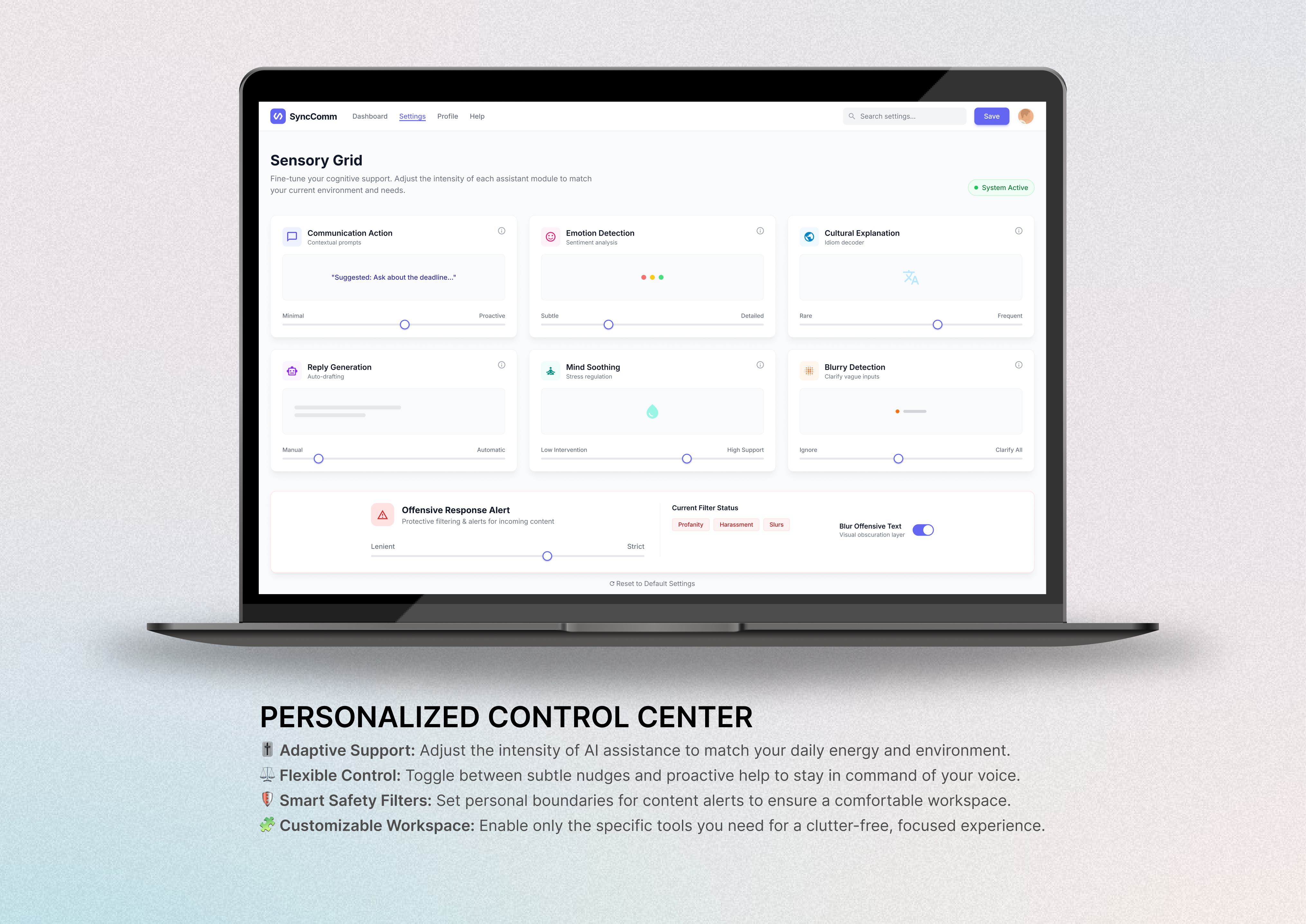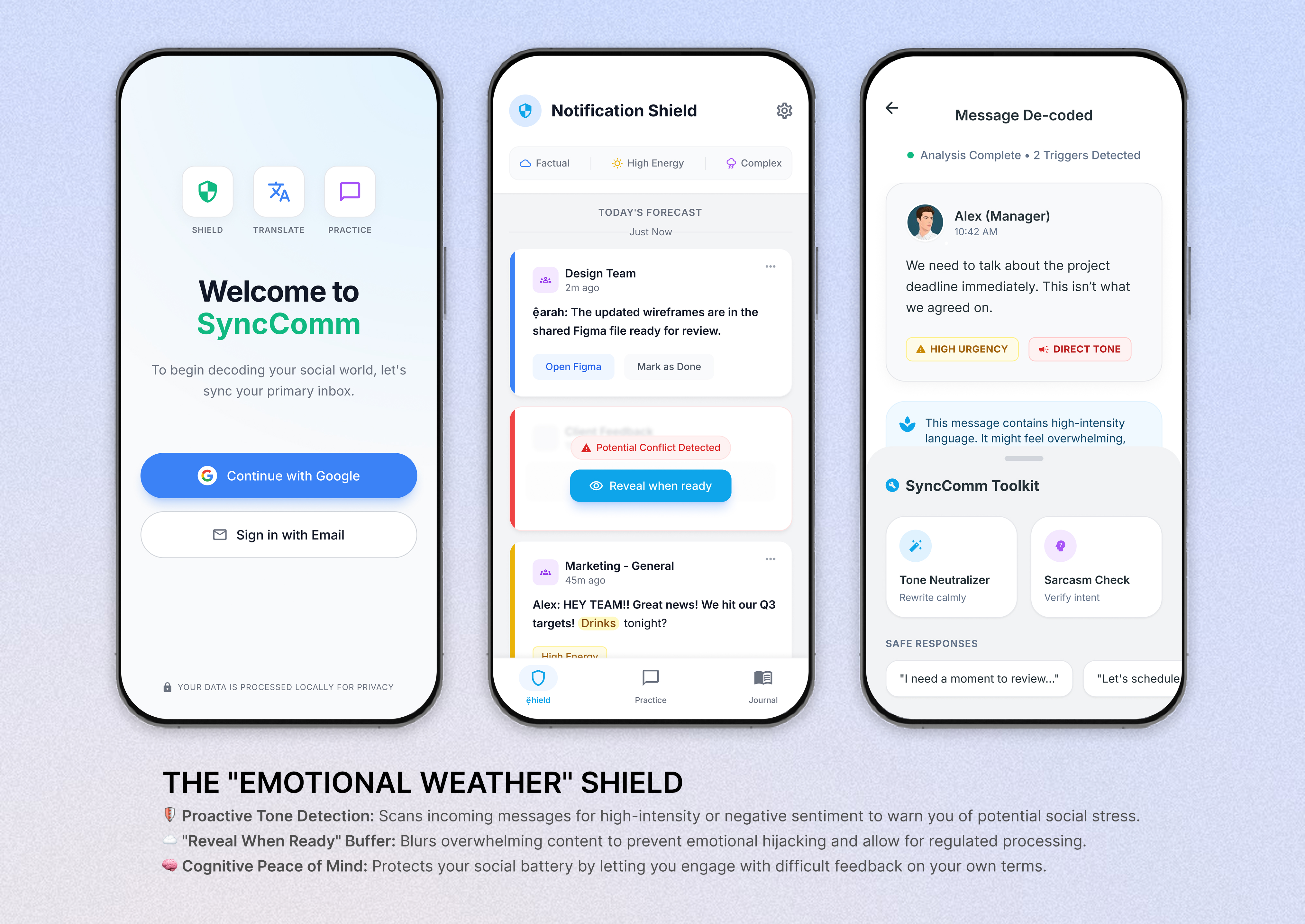 SyncComm AI is a "prosthetic executive function" designed to help neurodivergent professionals navigate the unwritten social rules of the workplace. By prioritizing Empathy over Efficiency and Autonomy over Automation, the platform reduces the "Double Empathy Problem"—the mutual misunderstanding between neurodivergent and neurotypical individuals—through real-time decoding and emotional regulation.