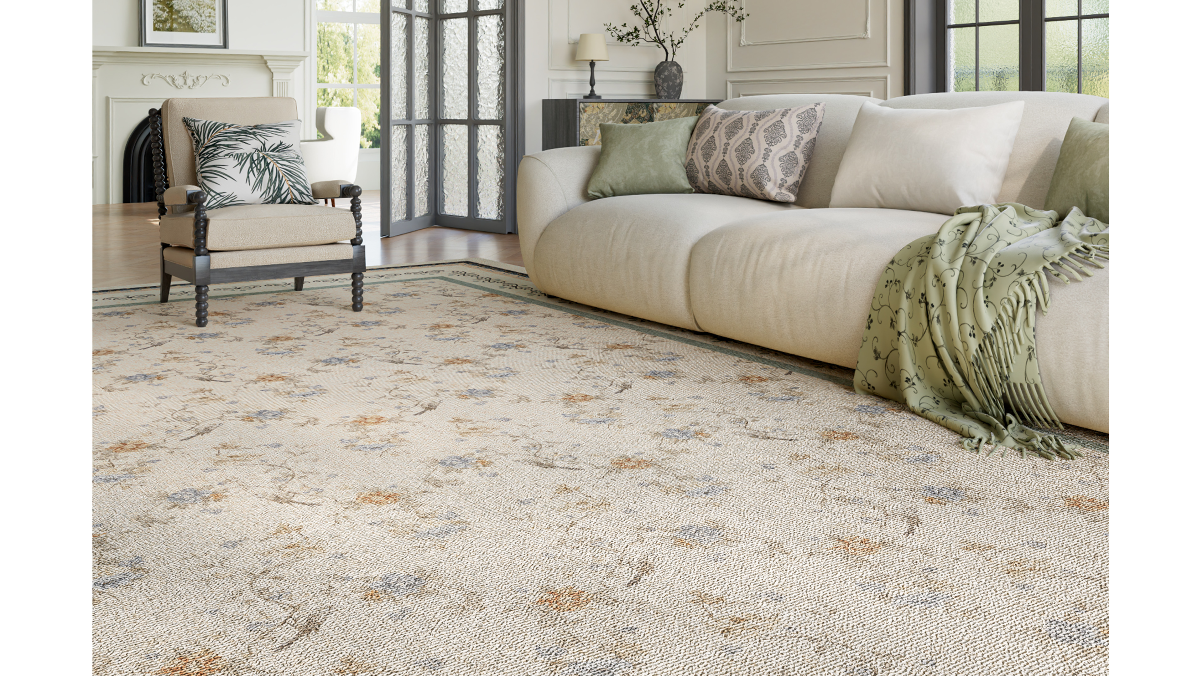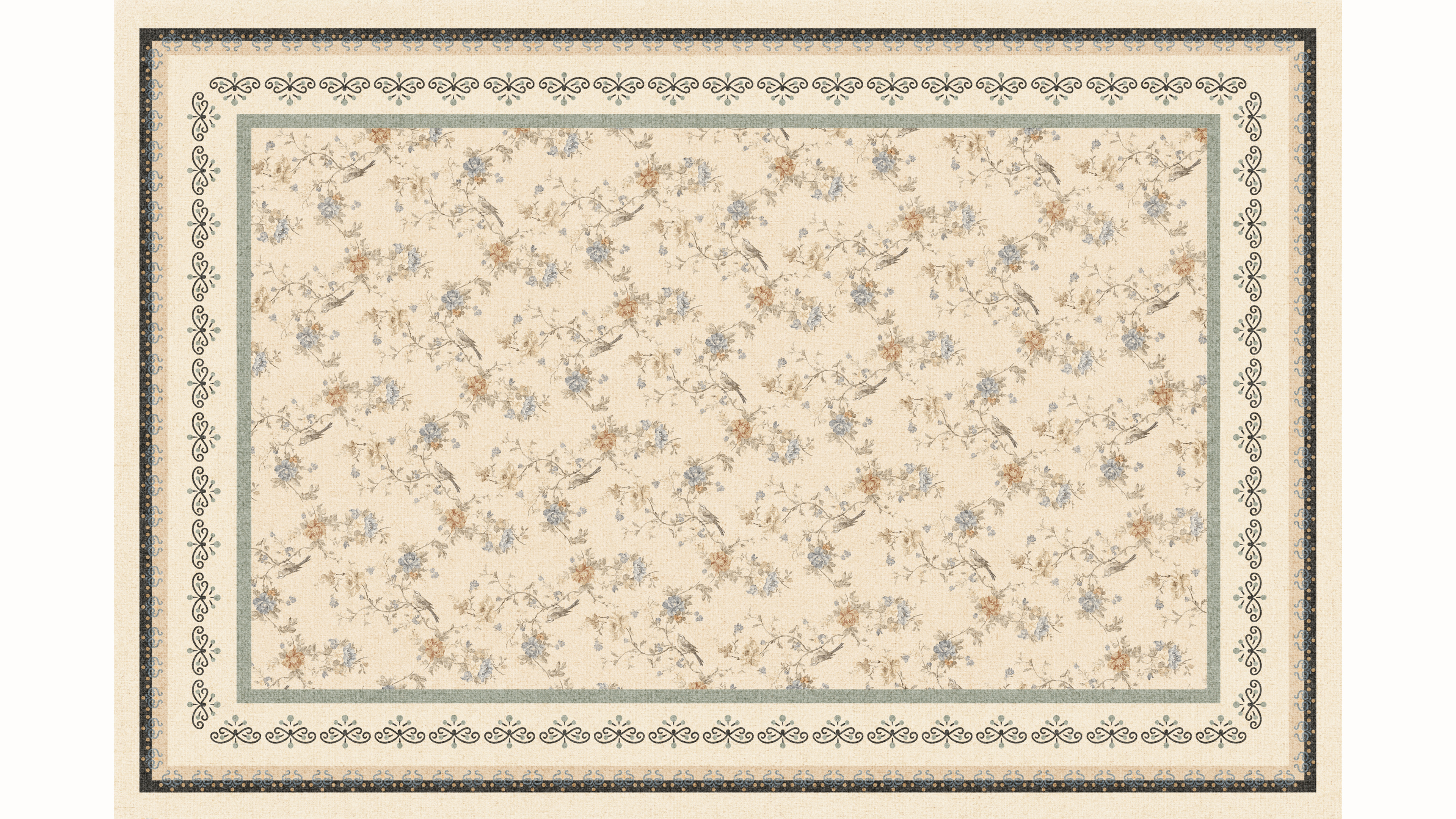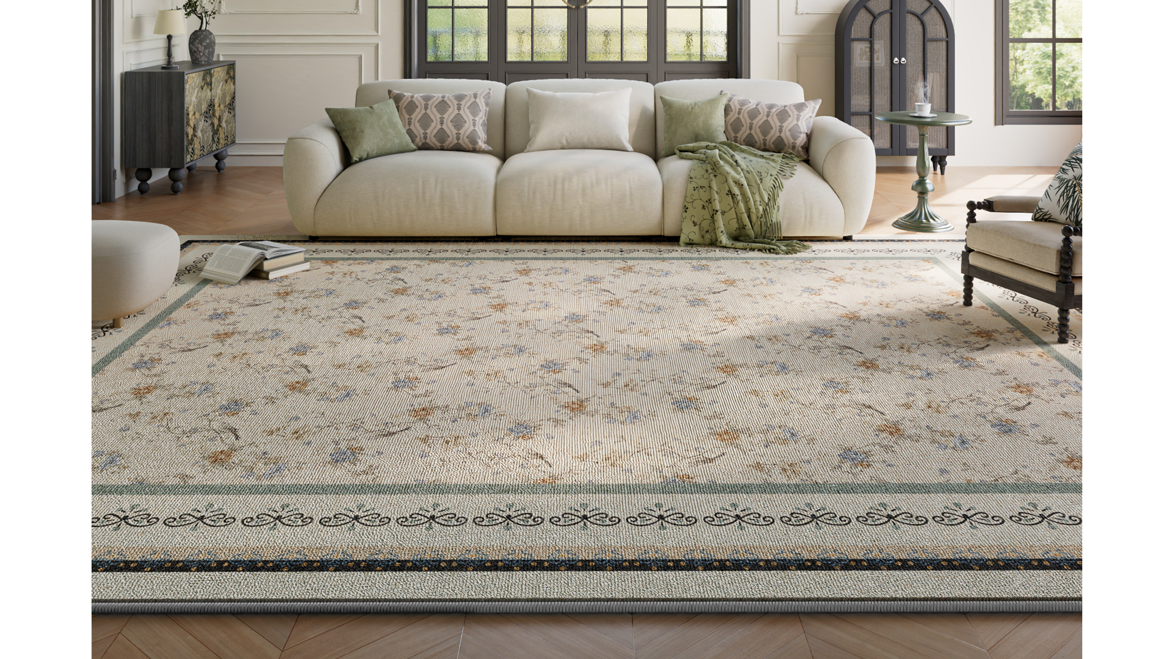 This poetic pursuit comes to life through a palette of soft cream yellow and mint green, reminiscent of Provence’s morning mist and golden afternoon sun. Delicate floral motifs and sophisticated borders evoke the effortless elegance of the Parisian Left Bank, turning the floor into a subtle yet sophisticated artistic statement.